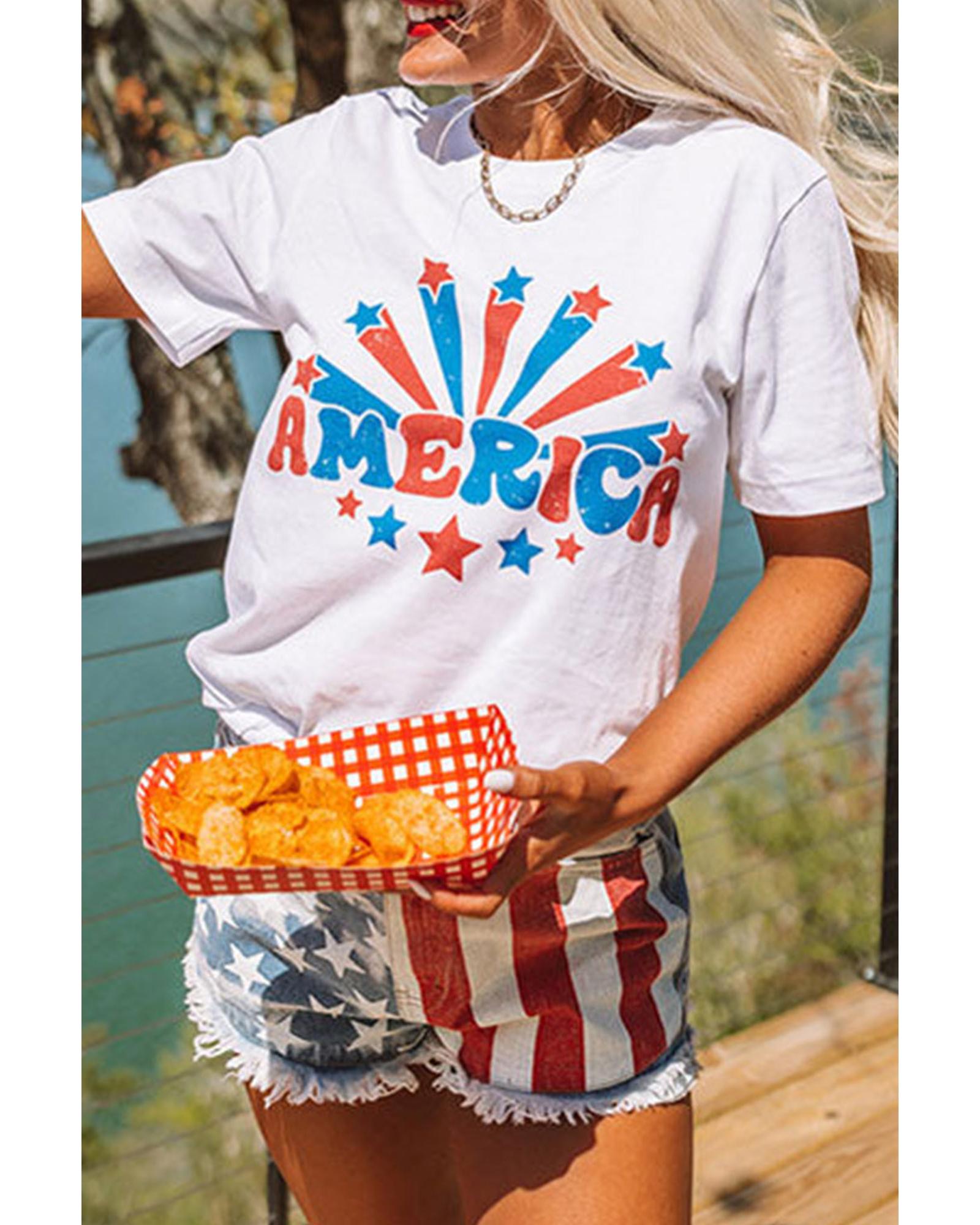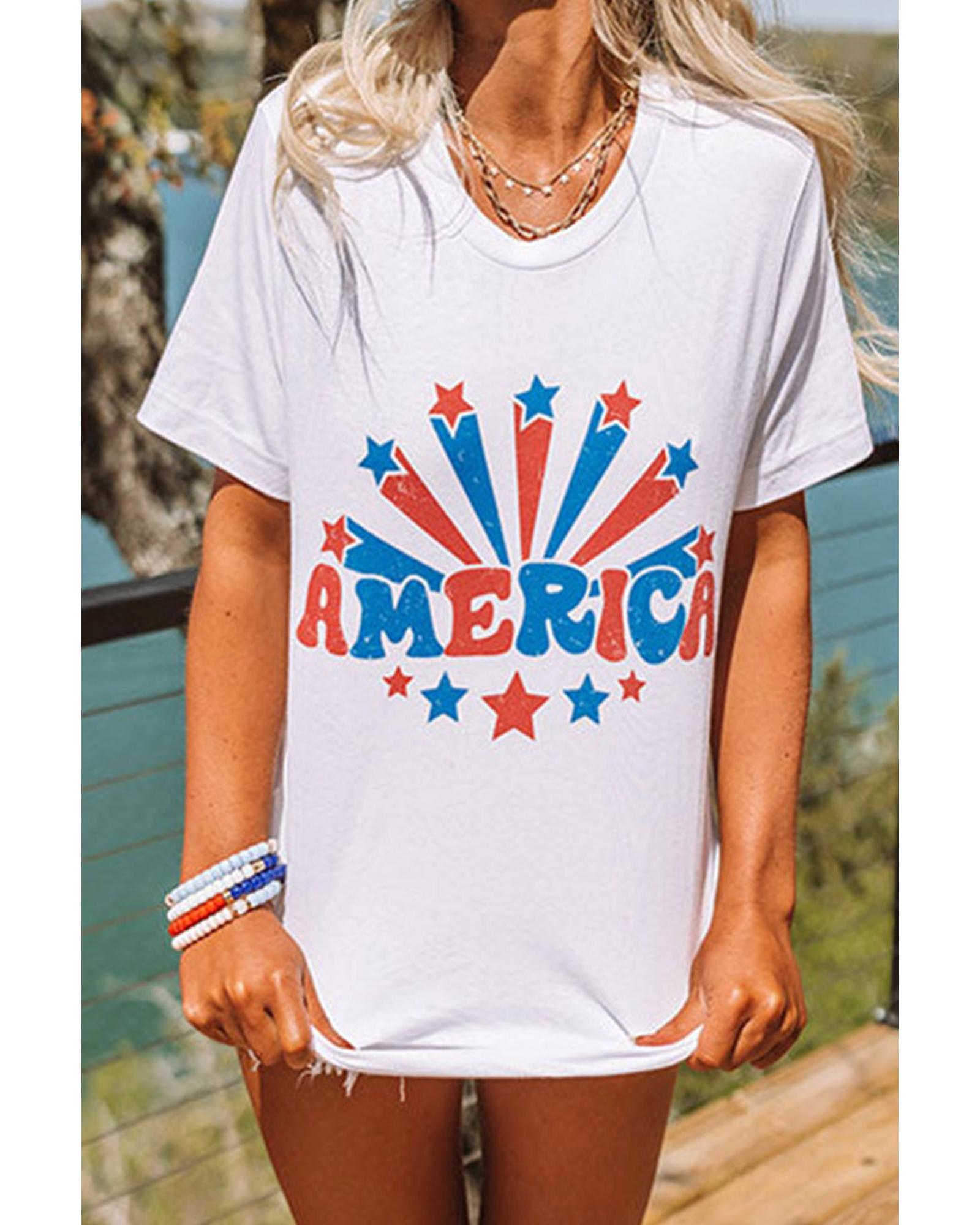 White AMERICA Star Graphic Round Neck Tee Short sleeve design AMERICA Stars graphic print Made from high