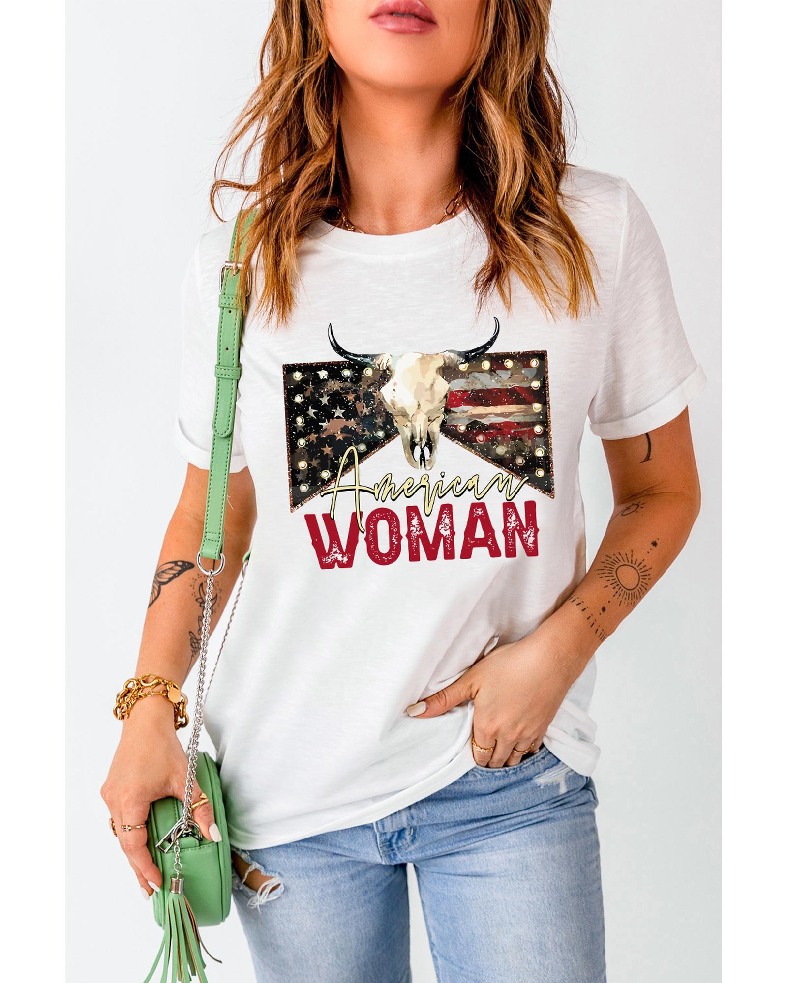 White American Woman Bull Skull Graphic T Shirt – 2XL
