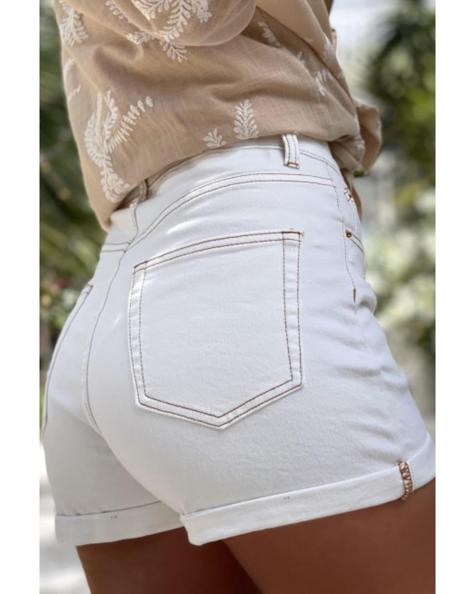 White Asymmetric Waist Design Stylish Denim Shorts – 10 US