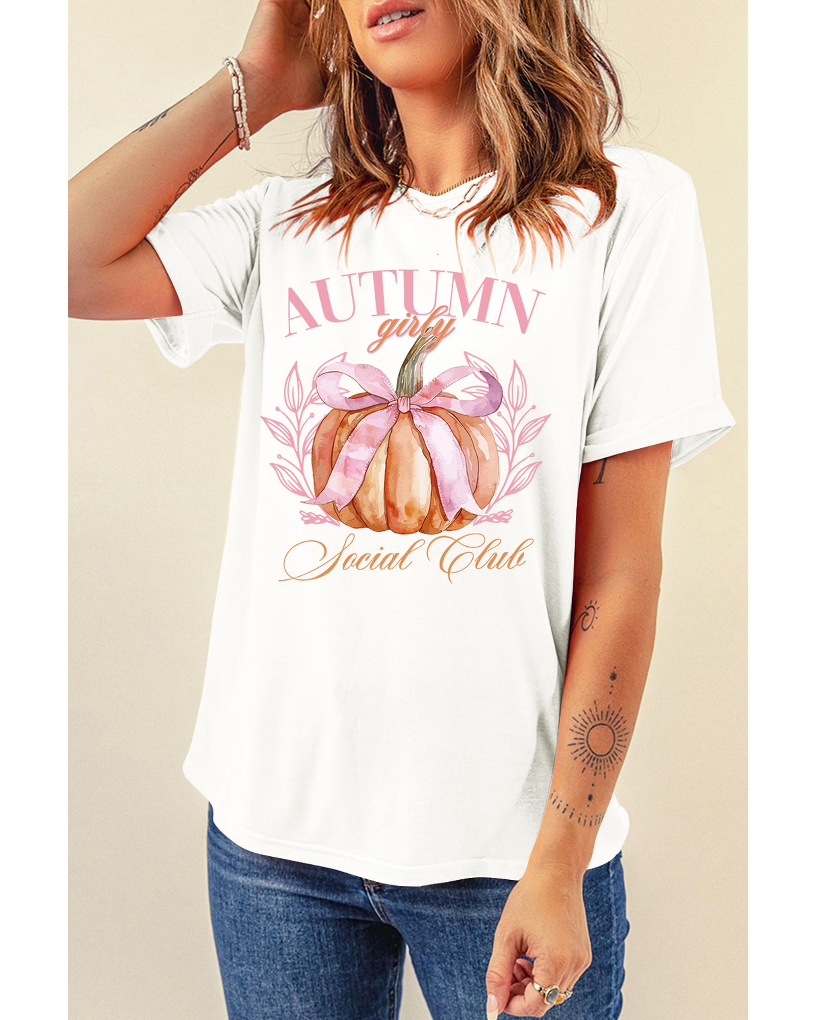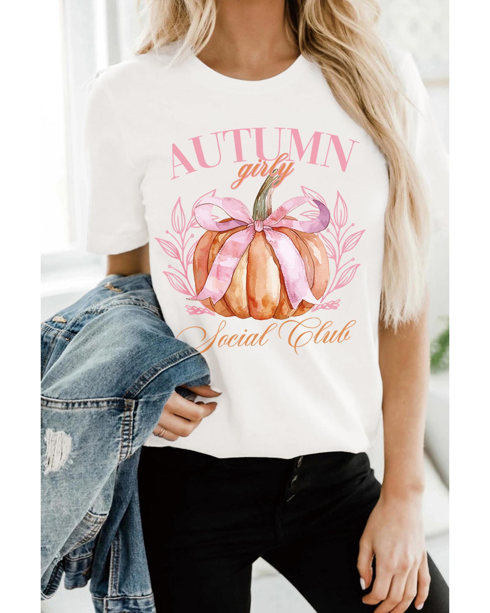 White Autumn Girly Thanksgiving Bowknot Pumpkin Graphic T Shirt – XL