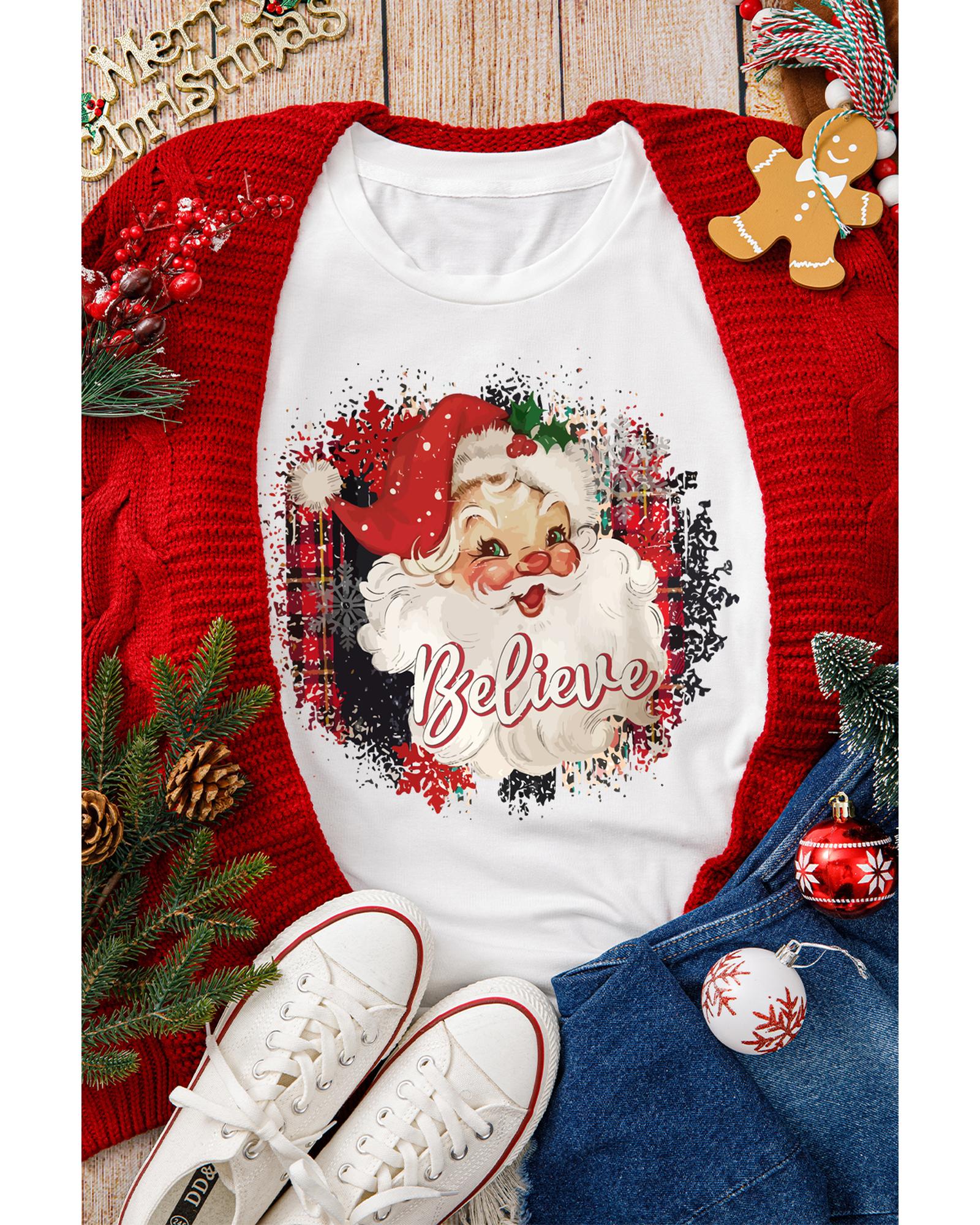 White Believe Christmas Father Graphic Crewneck T Shirt – XL