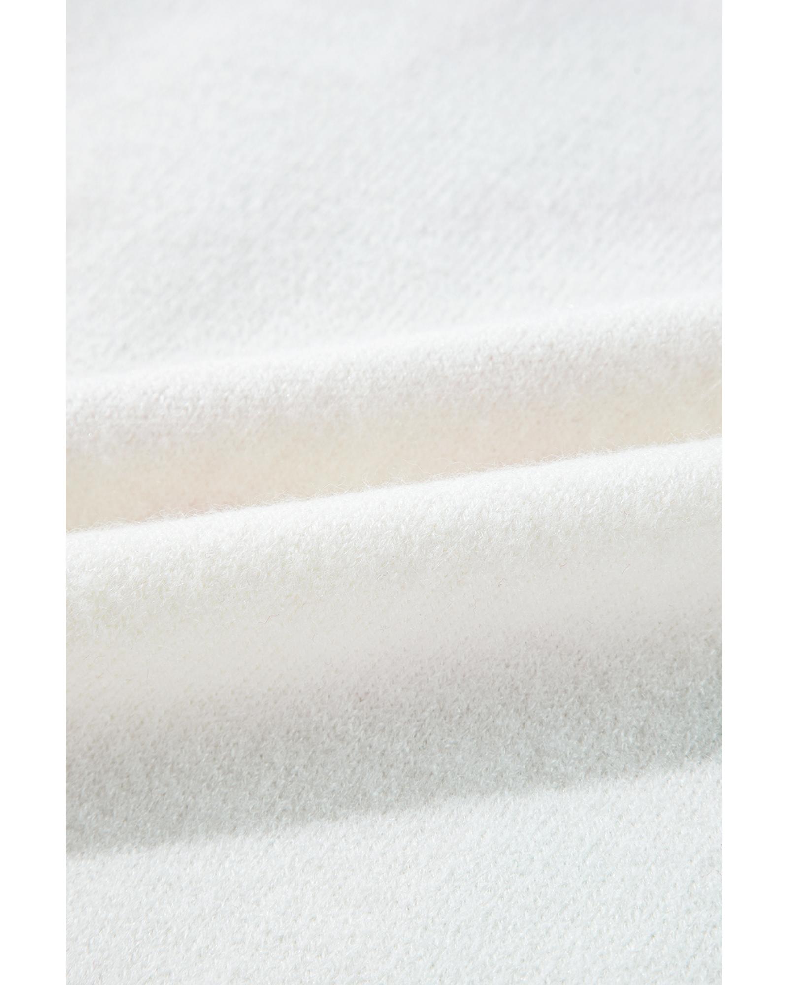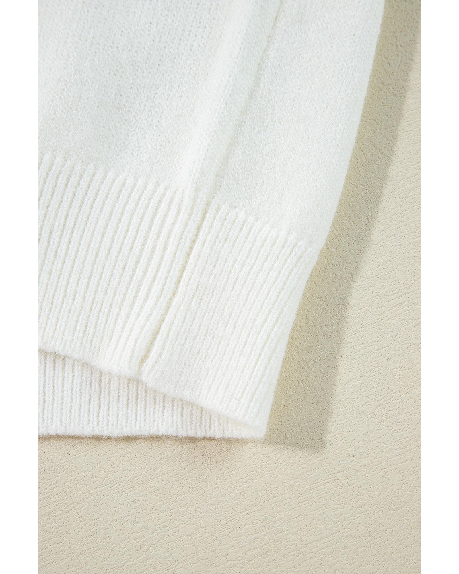 White Big Flower Pattern V Neck Drop Shoulder Sweater – S