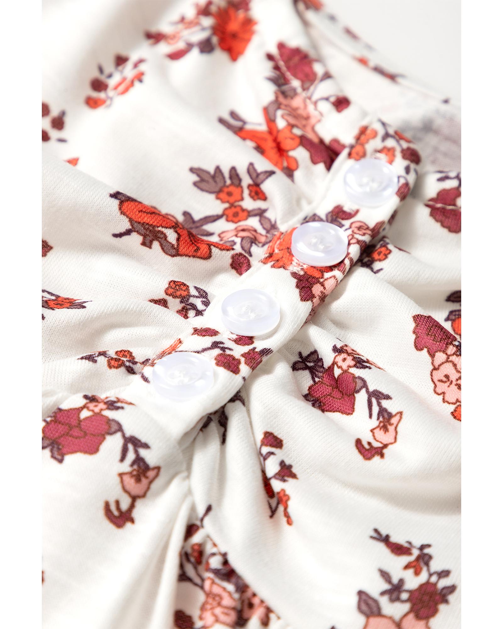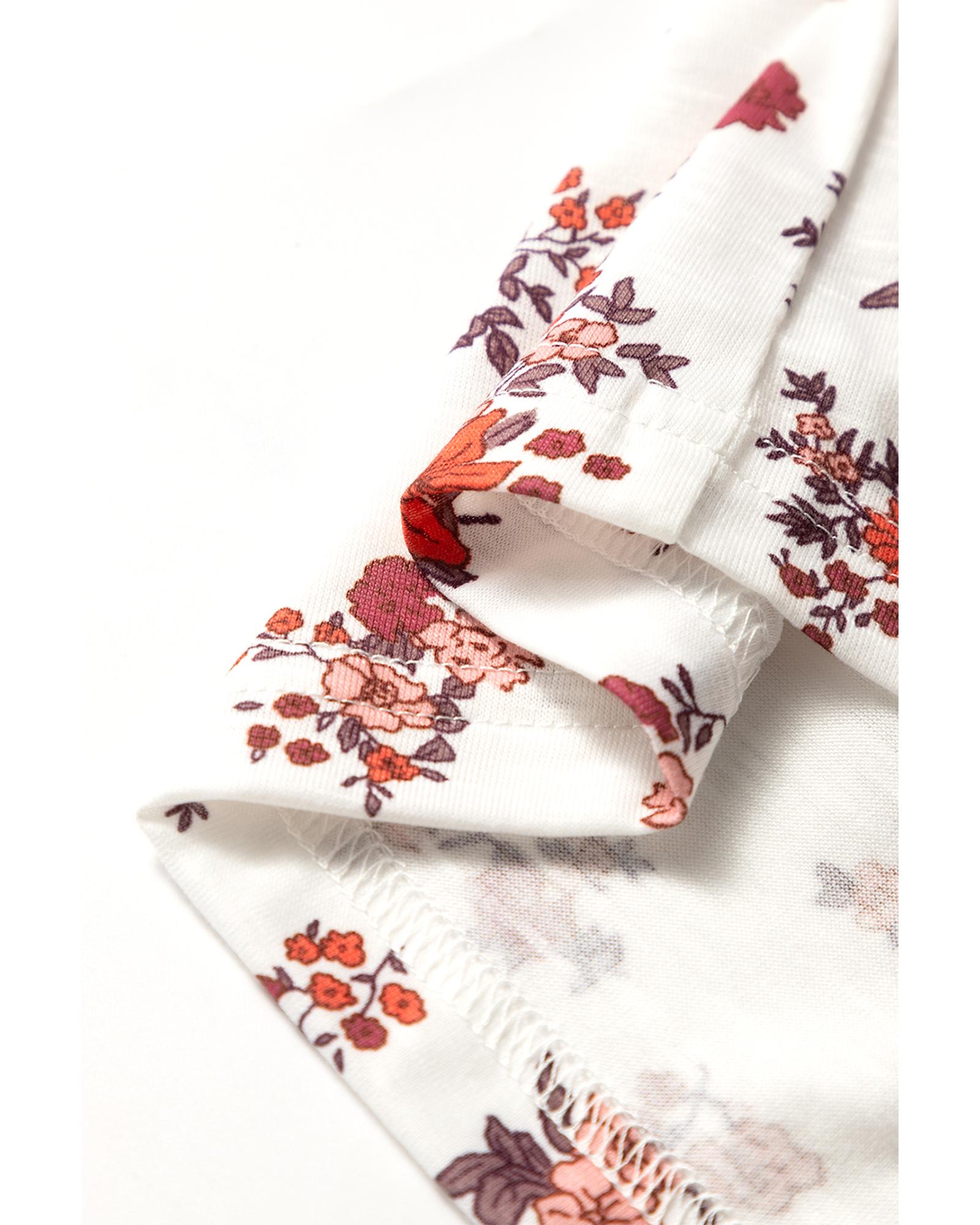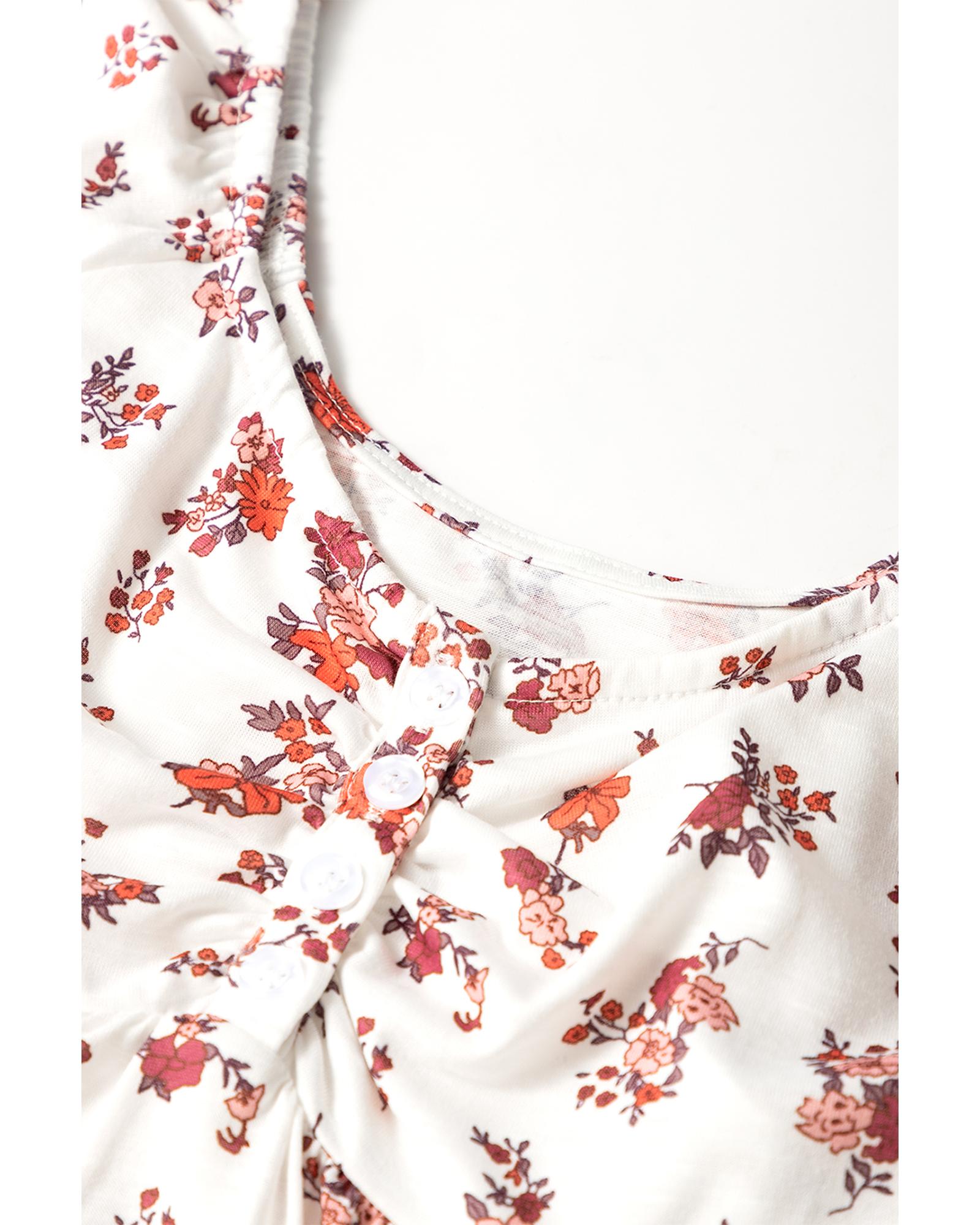 White Boho Floral Ruched Cinched Short Sleeve Blouse – S