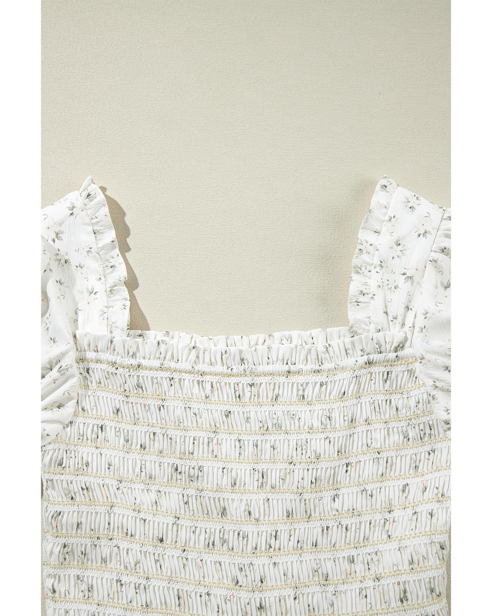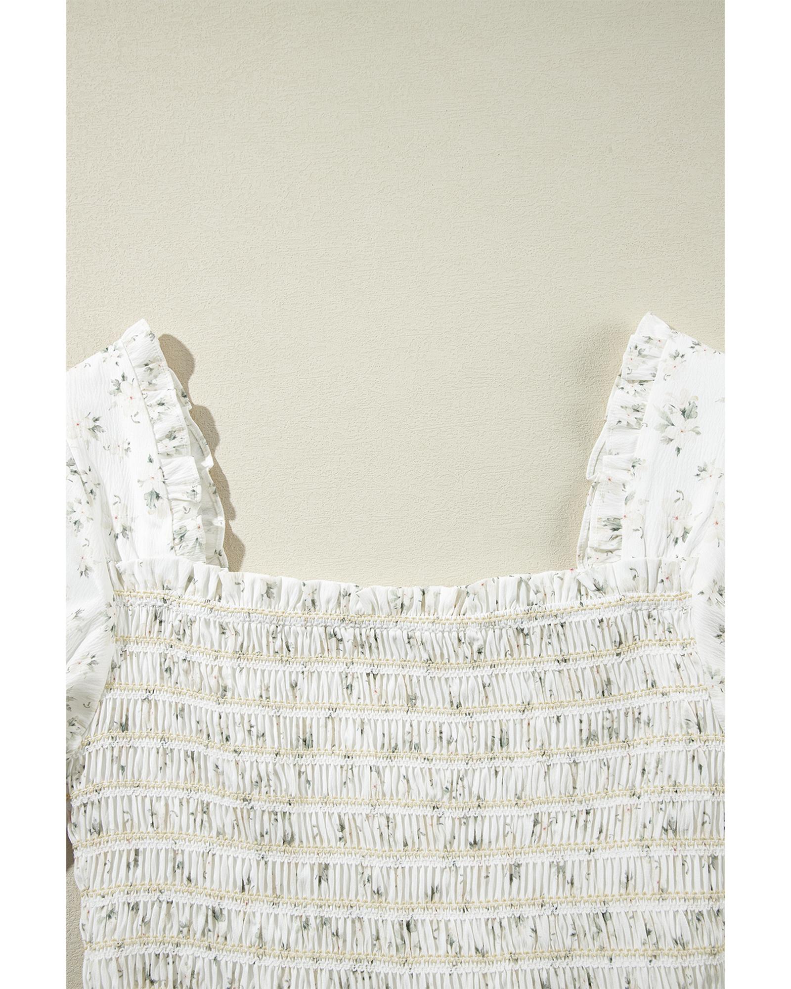 White Boho Floral Smocked Wide Leg Short Puff Sleeve Jumpsuit – XL