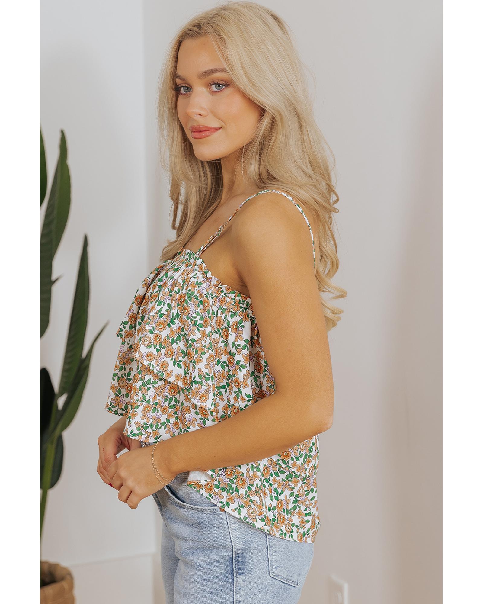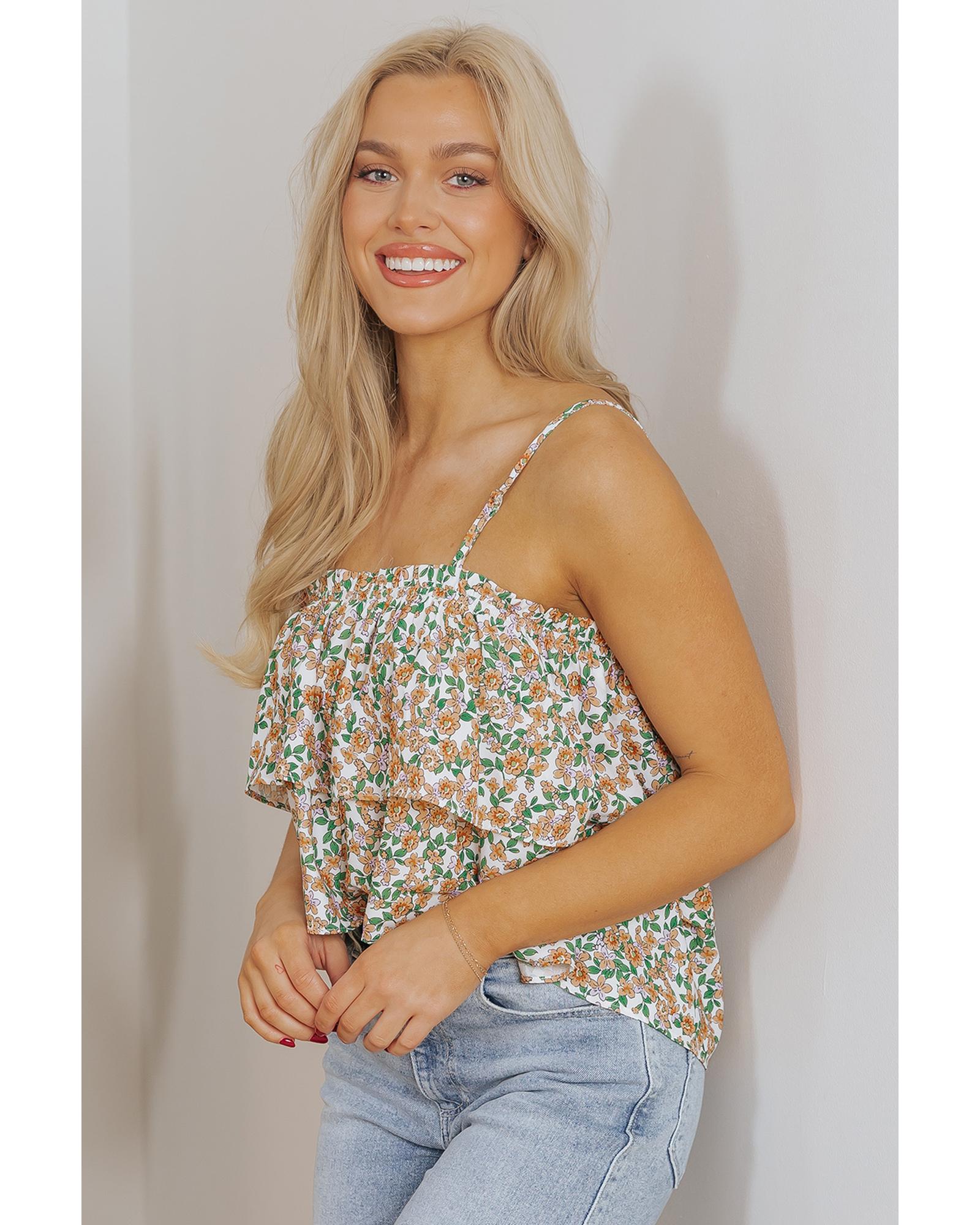 White Boho Floral Spaghetti Strap Ruffle Summer Tank Top – XL
