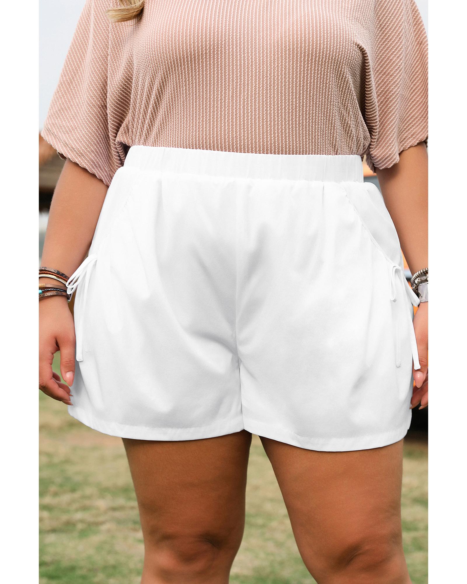White Bow Decor Pockets Plus Size Shorts – 1X