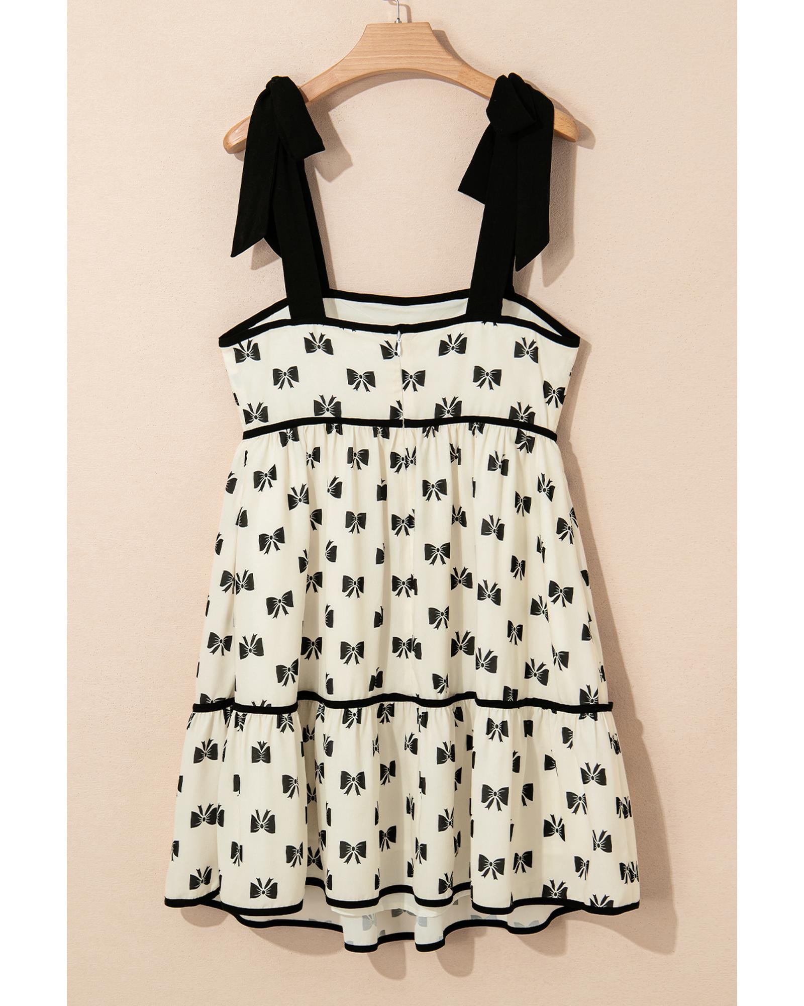 White Bow Knot Color Contrast Trim Knotted Shoulder Mini Dress – XL