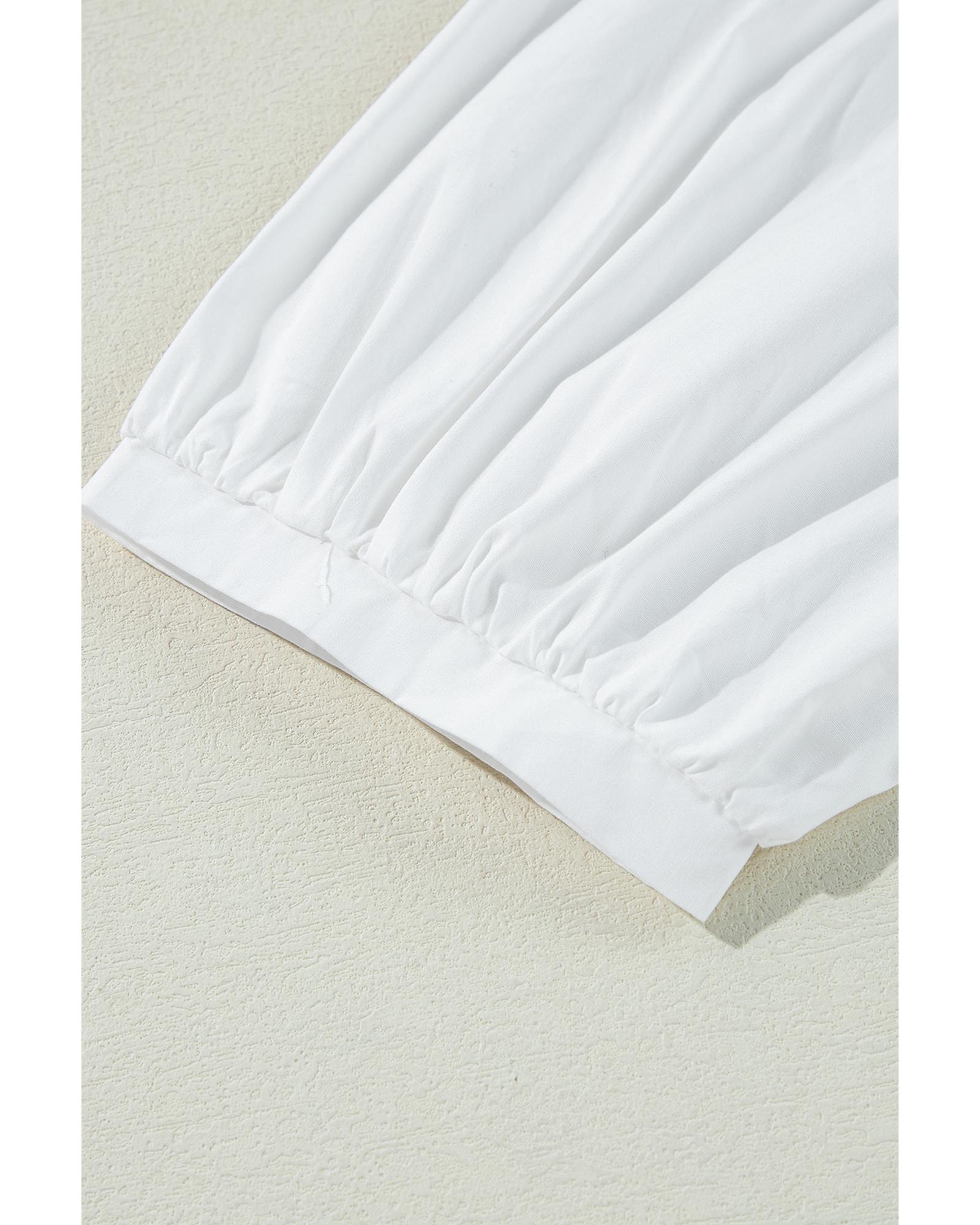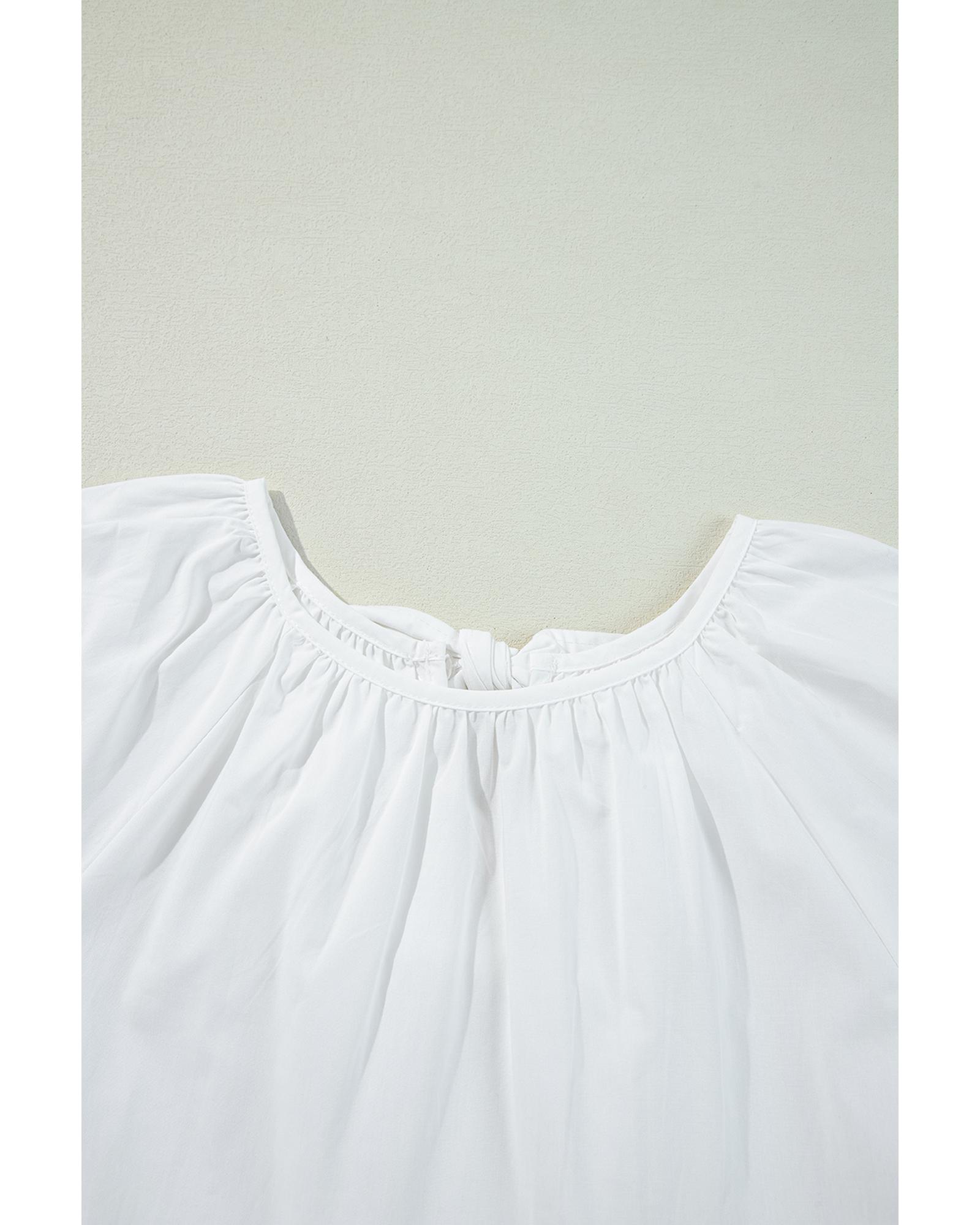 White Bow Knot Cutout Back Loose Fit 3/4 Sleeve Blouse – XL
