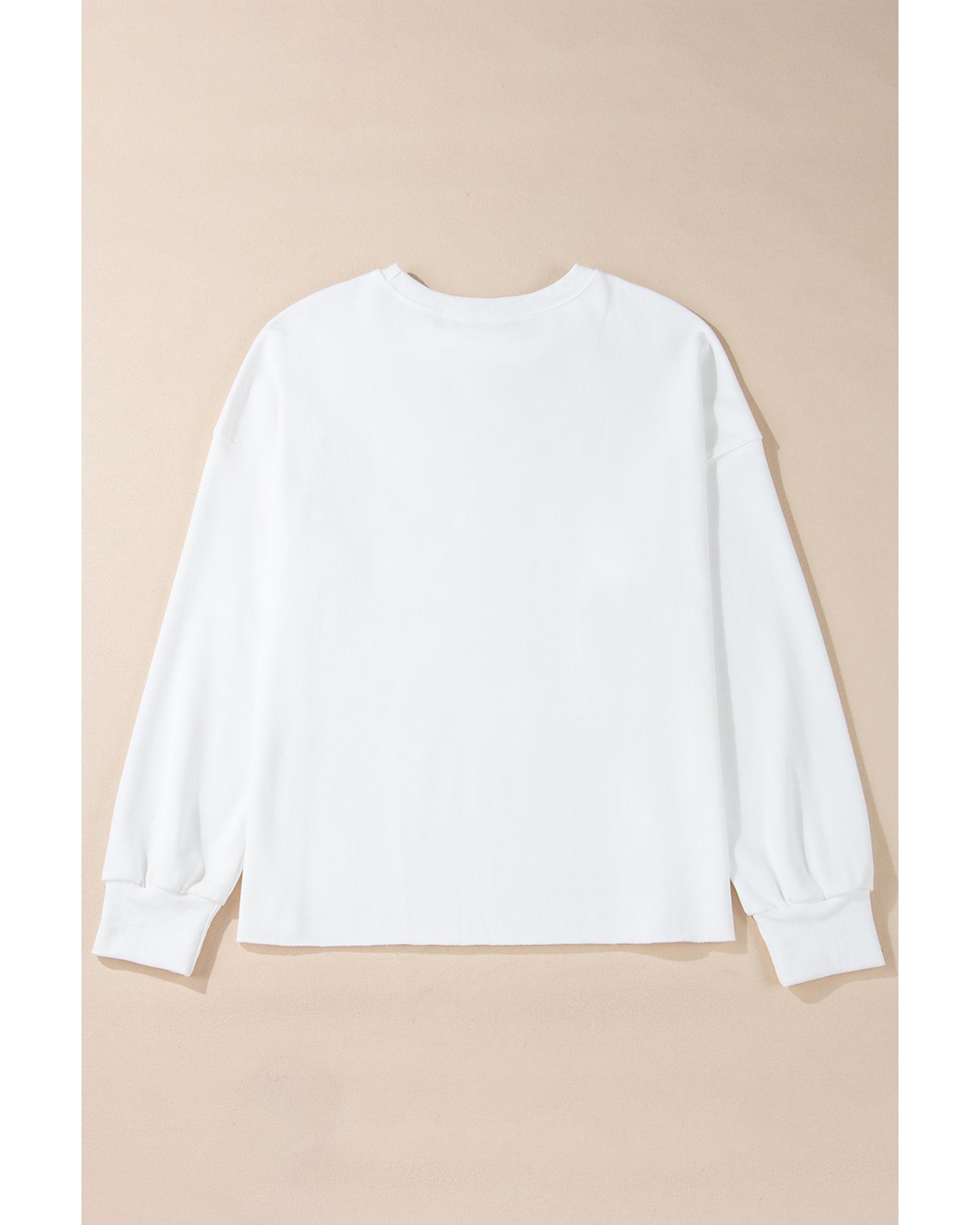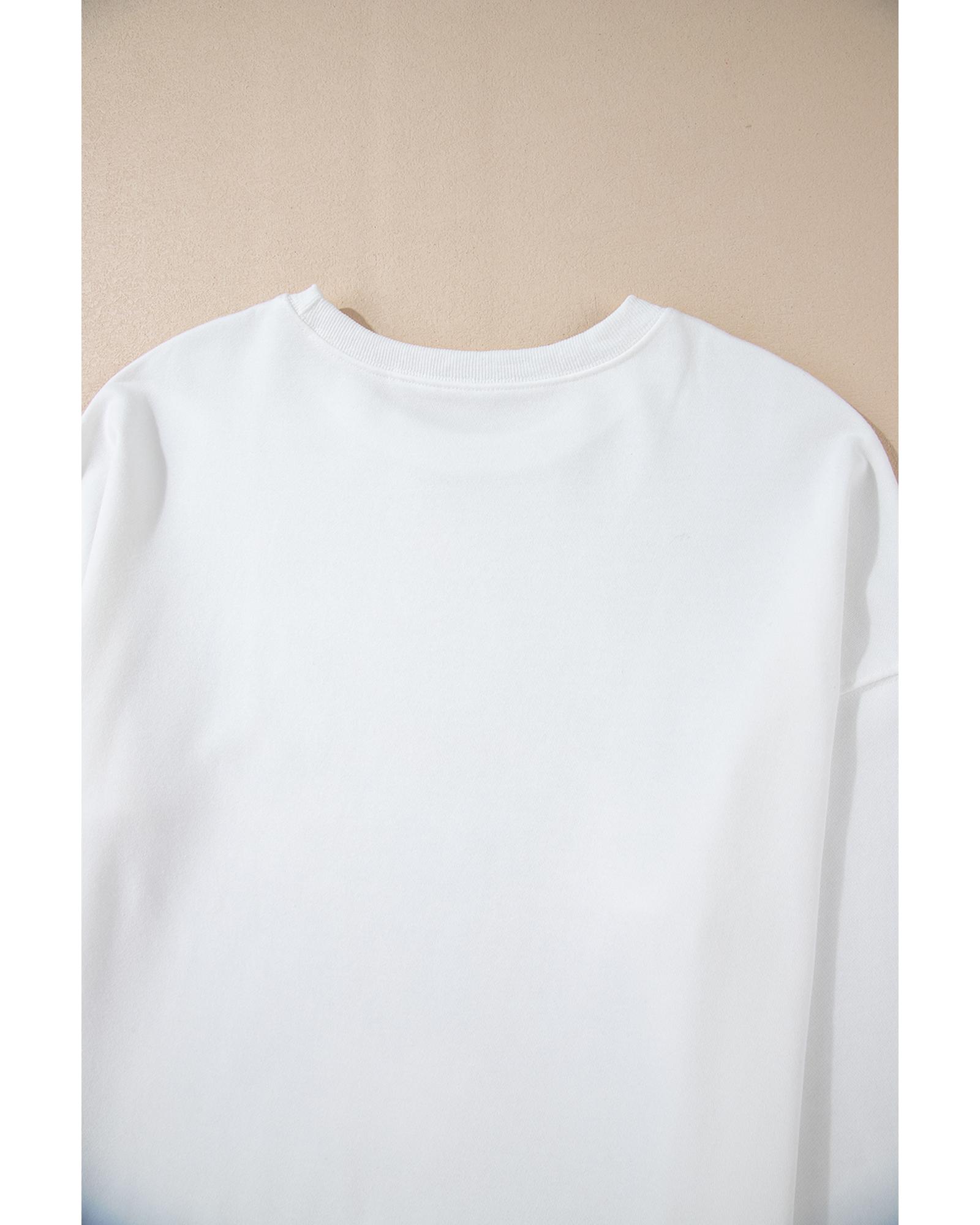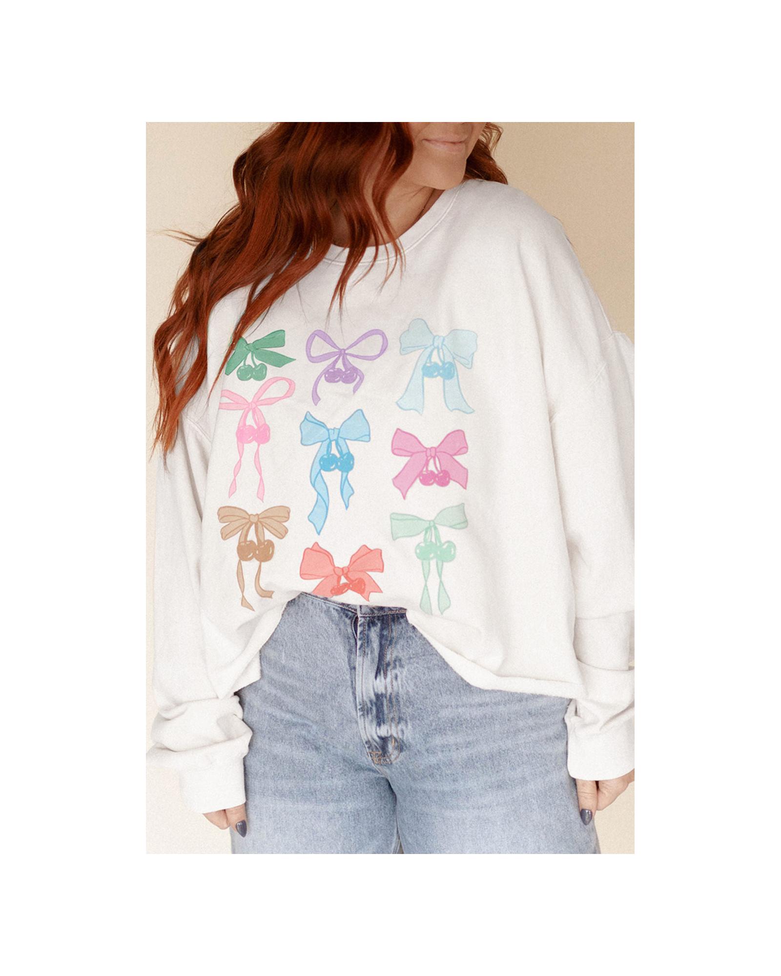 White Bowknot Pattern Drop Shoulder Loose Sweatshirt – M
