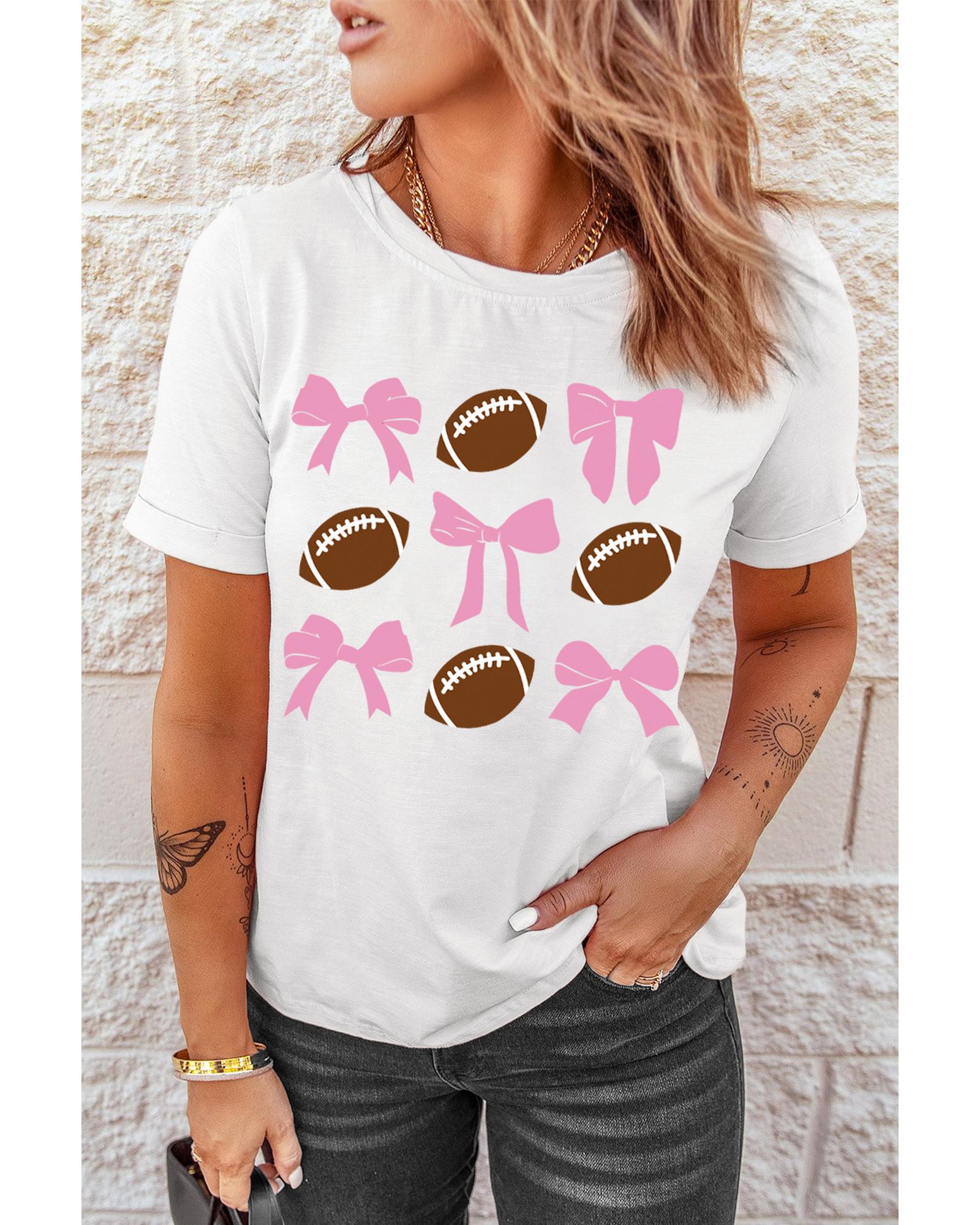 White Bowknot Rugby Football Printed Game Day T Shirt – 2XL