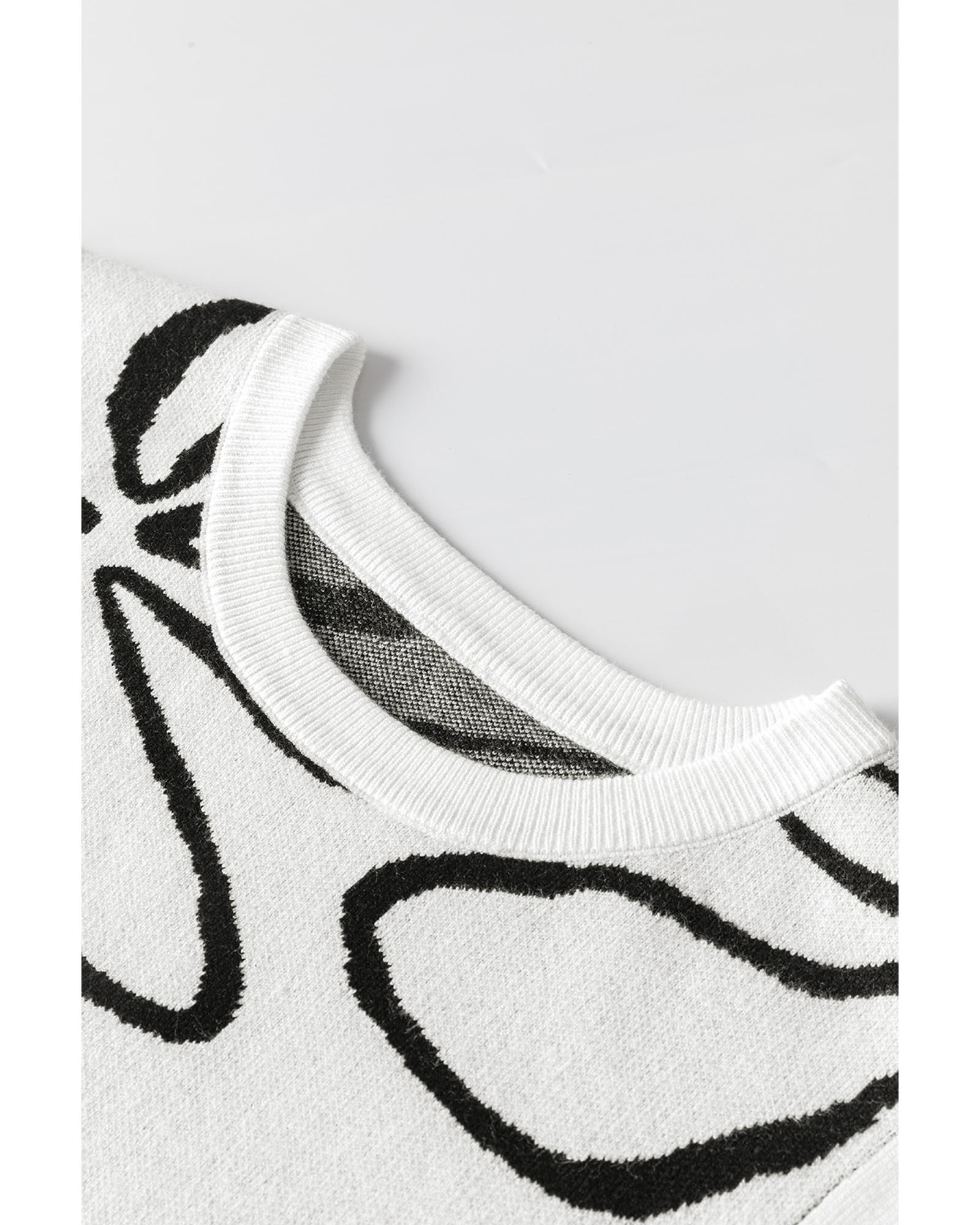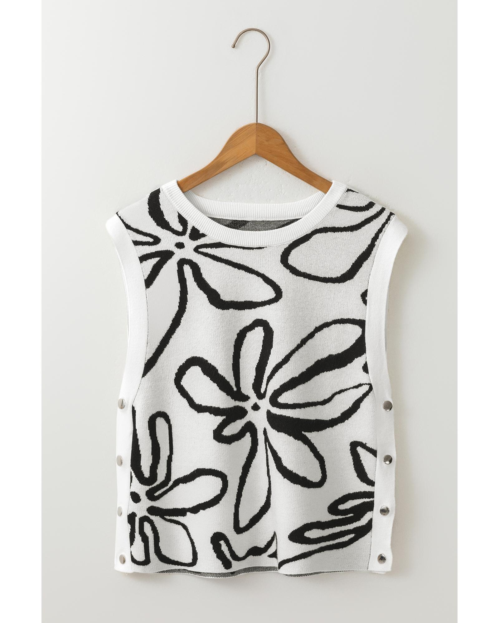 White Button Sides Sleeveless Floral Knitted Top – L