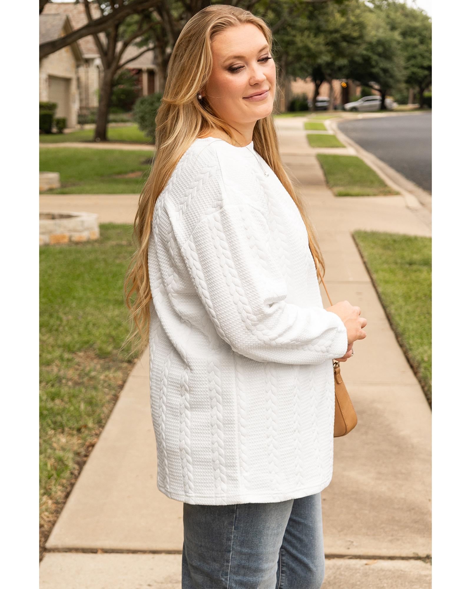 White Cable Textured Loose Plus Size Sweatshirt – 2X