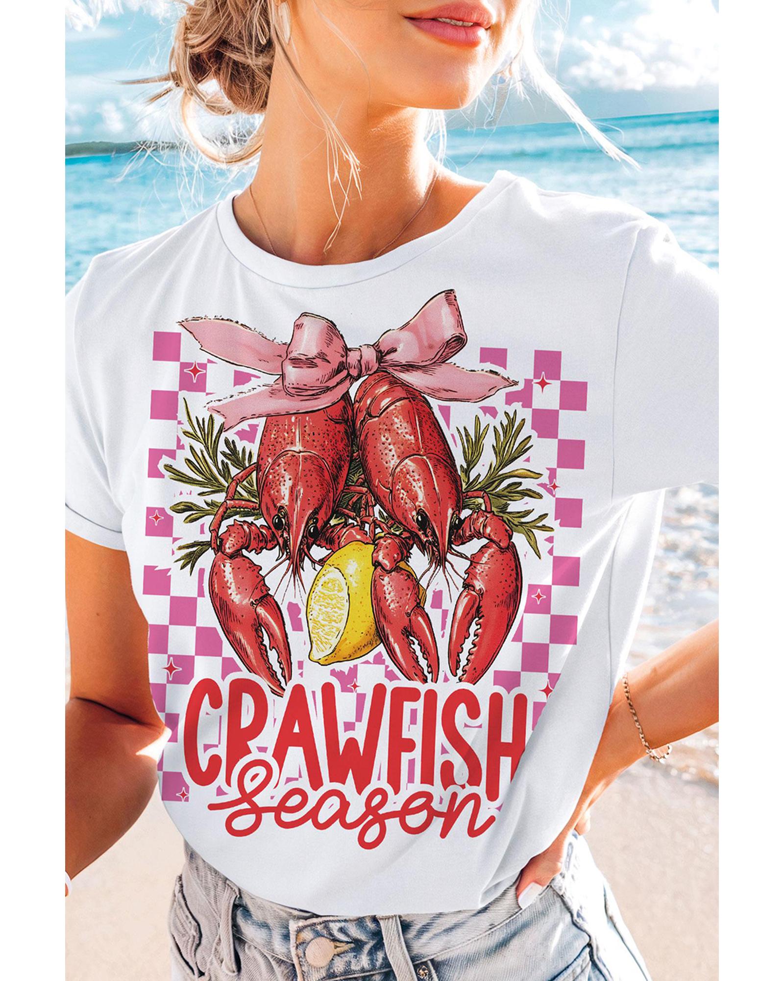 White Checkerboard Bow Crawfish Season Printed Crewneck T Shirt – 2XL