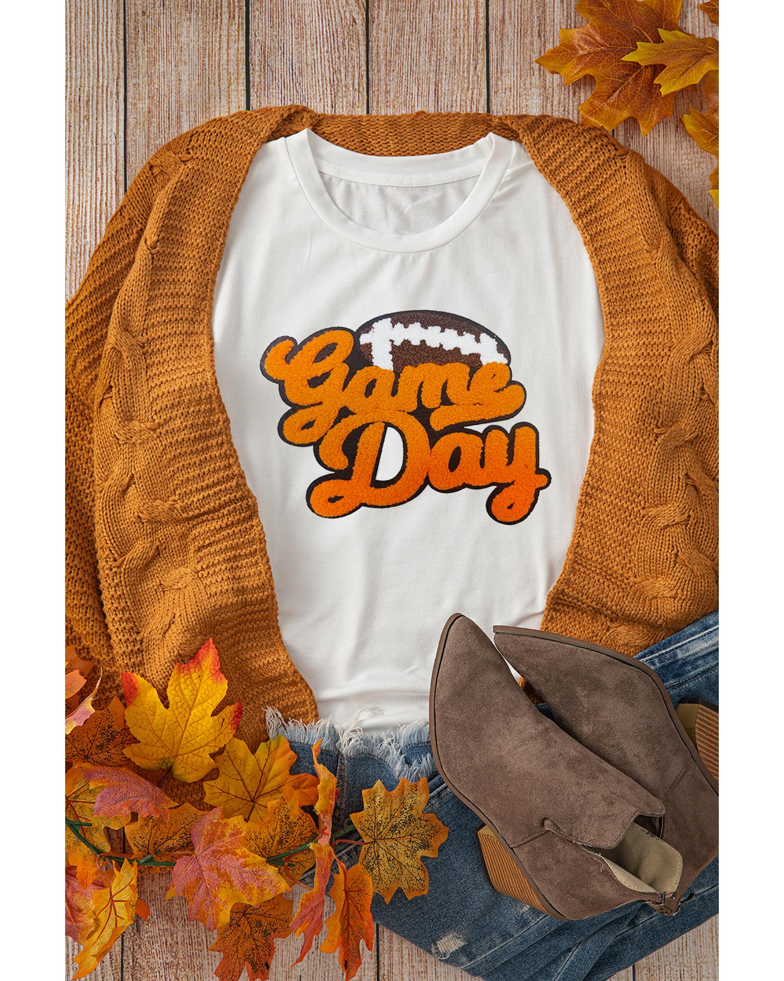 White Chenille Game Day Rugby Football Pattern Crewneck T Shirt – 2XL