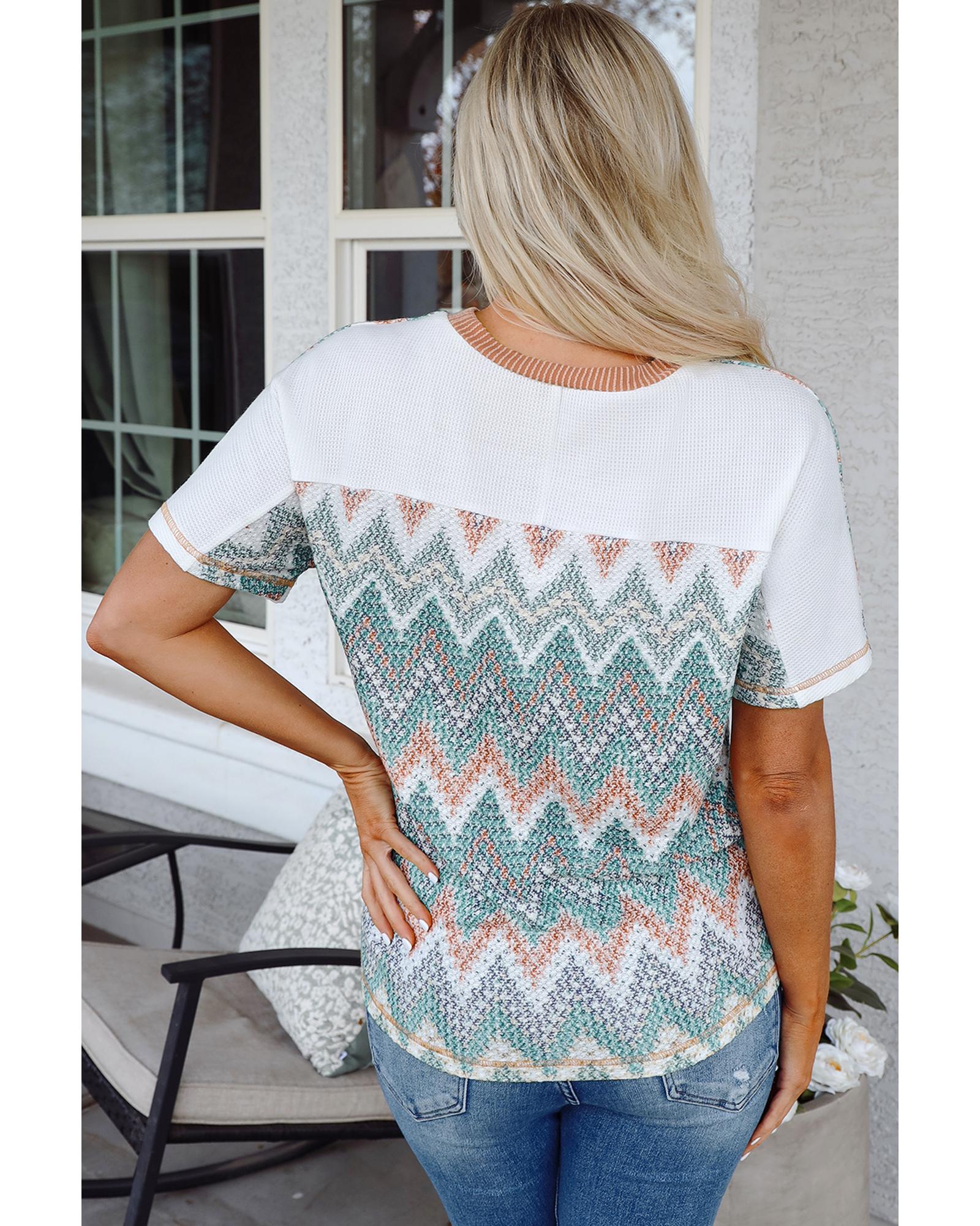 White Chevron Patchwork Raglan Sleeve Knitted T Shirt – XL
