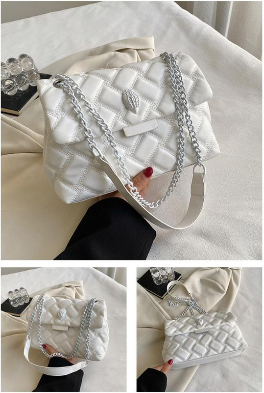 White Chic Quilted Crossbody Bag for Women – PU Leather Diamond Pattern Chain Strap Shoulder Purse with Elegant Clasp