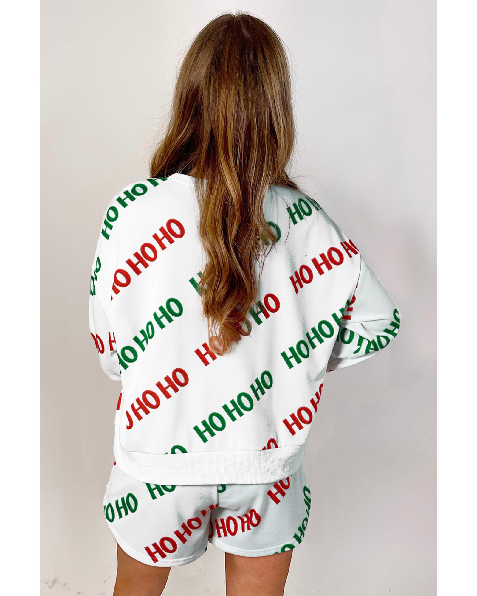 White Christmas HOHOHO Print Drop Shoulder Pullover and Casual Shorts Set – L