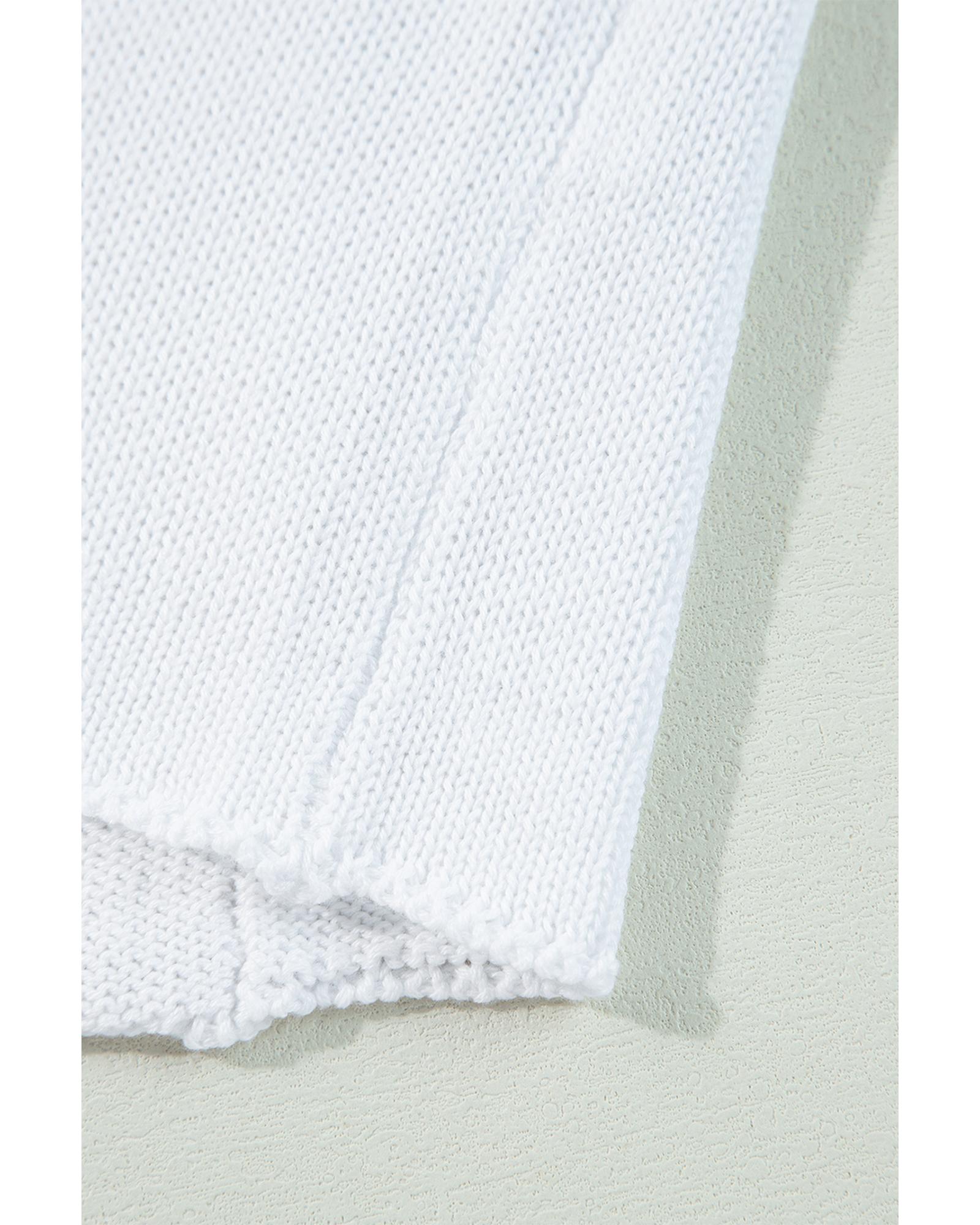 White Collared Button-up Loose Fit Casual Sweater – L