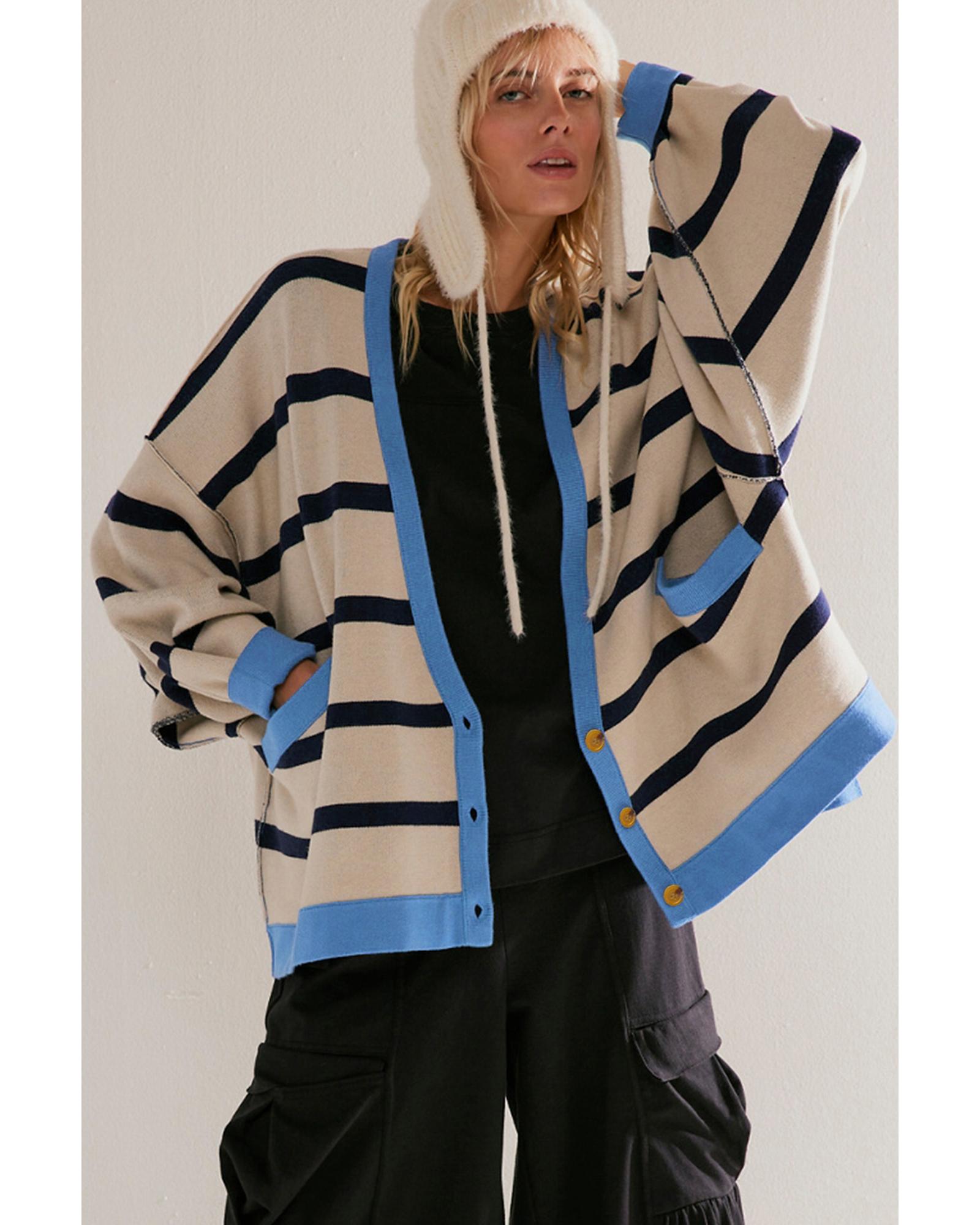White Colorblock Drop Shoulder Buttoned Loose Cardigan – S