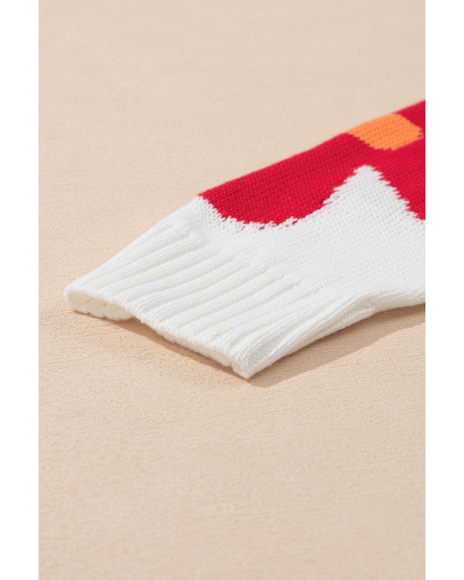 White Western Geometric Patterned Crew Neck Loose Sweater - S