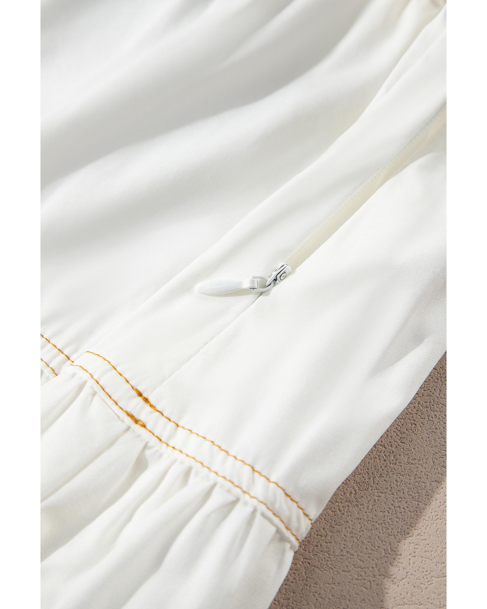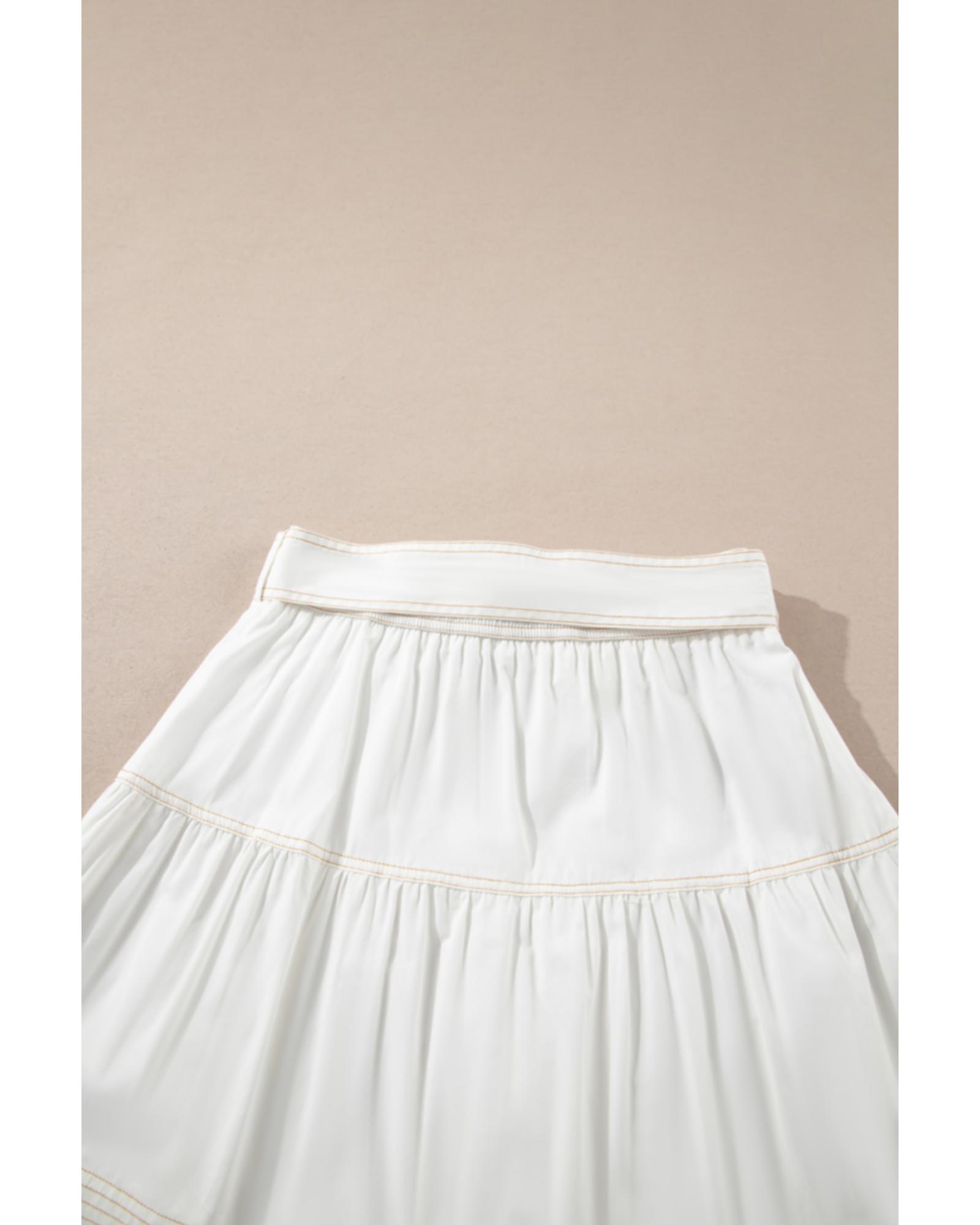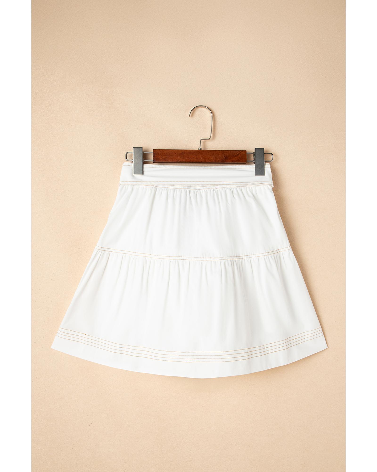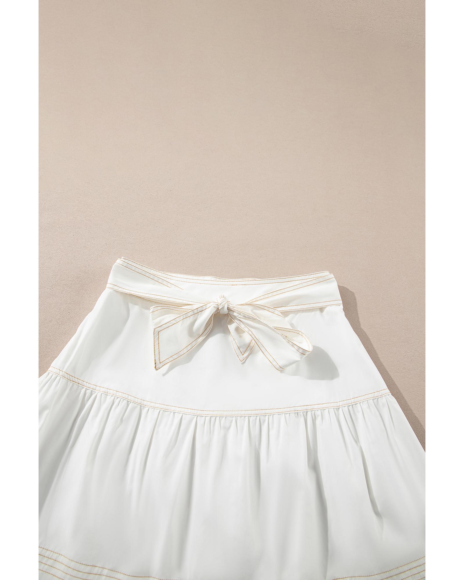 White Contrast Stitching Trim Knotted High Waist A-Line Mini Skirt – M