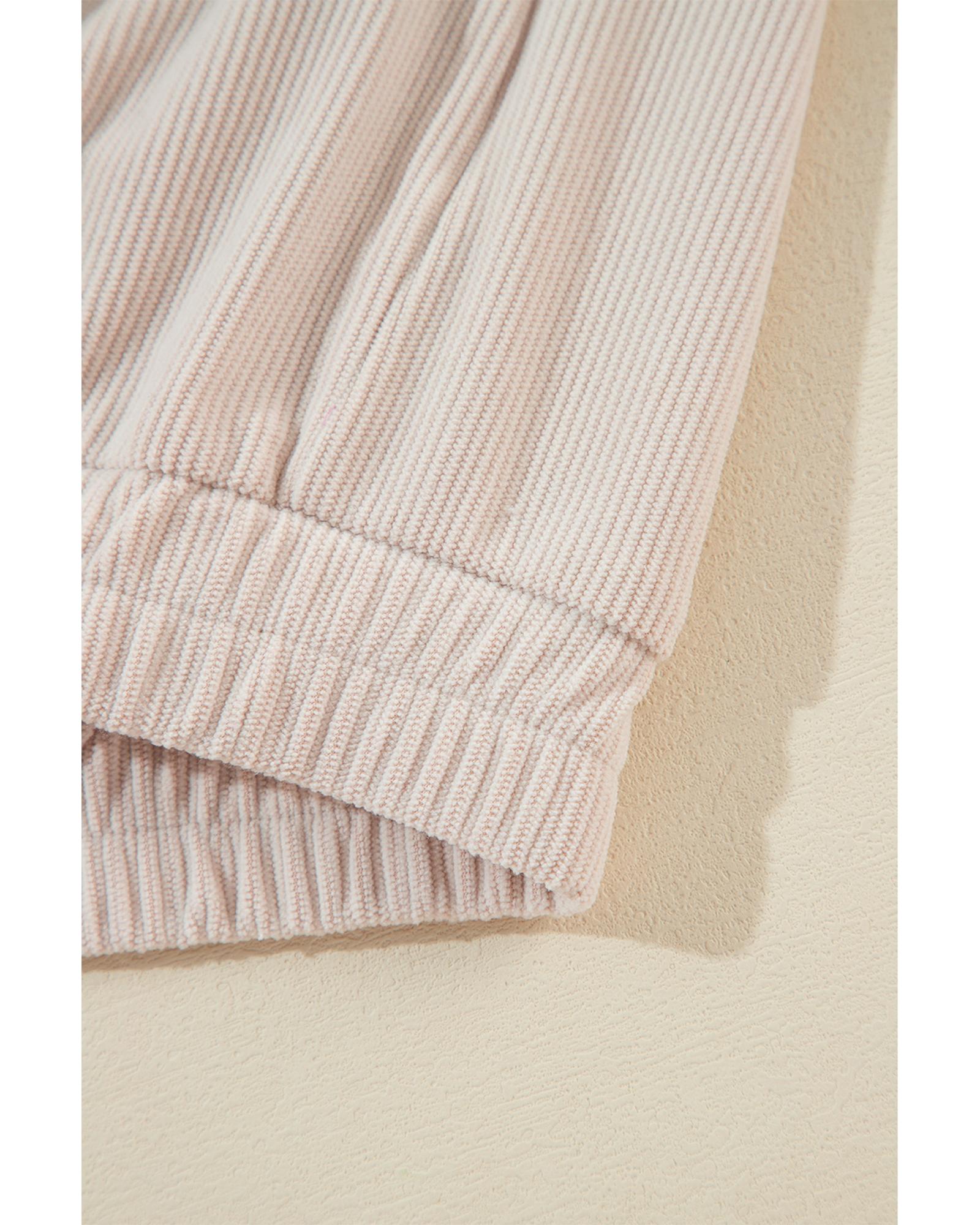 White Corduroy Drawstring Hooded Pocket Zip Up Jacket – XL