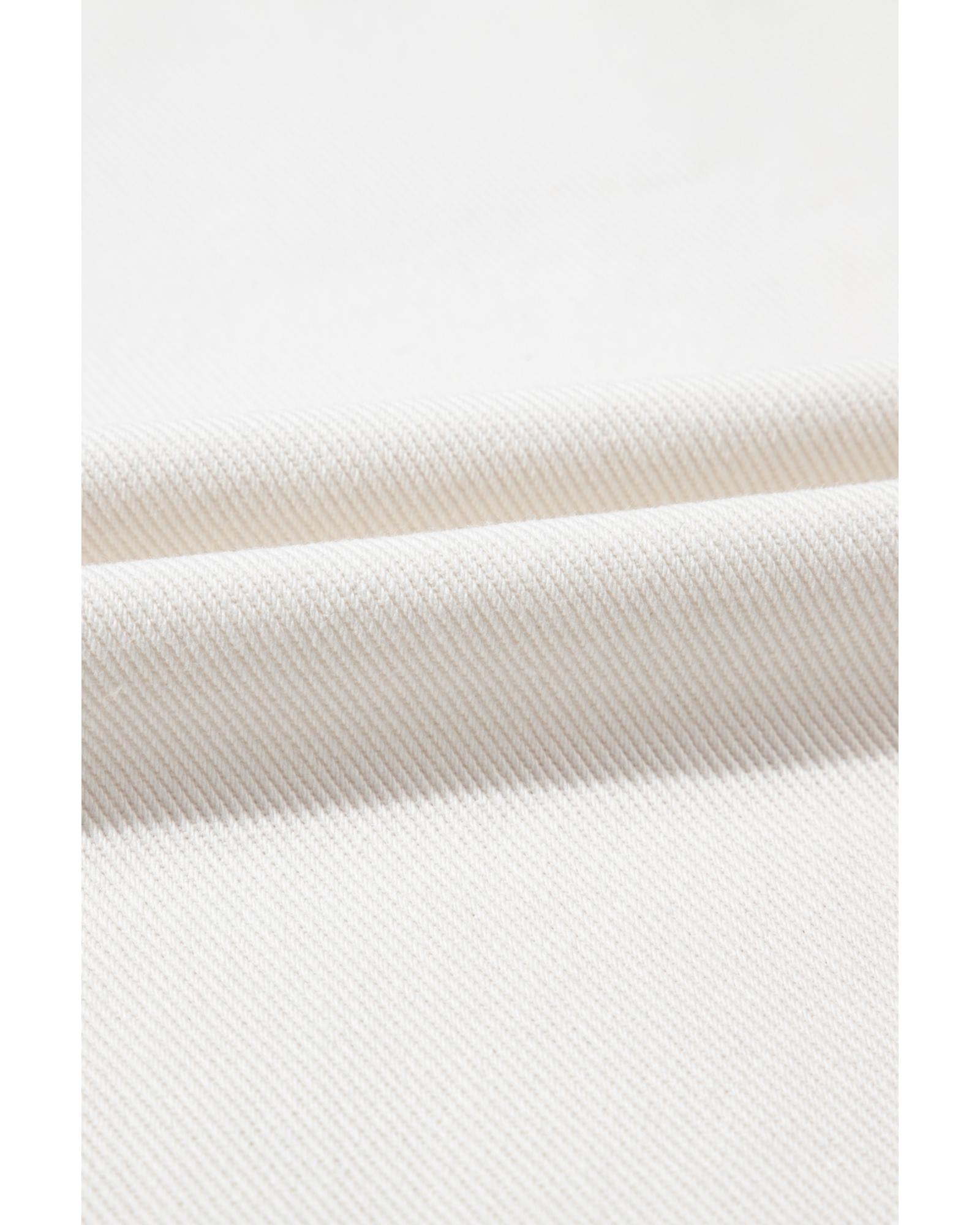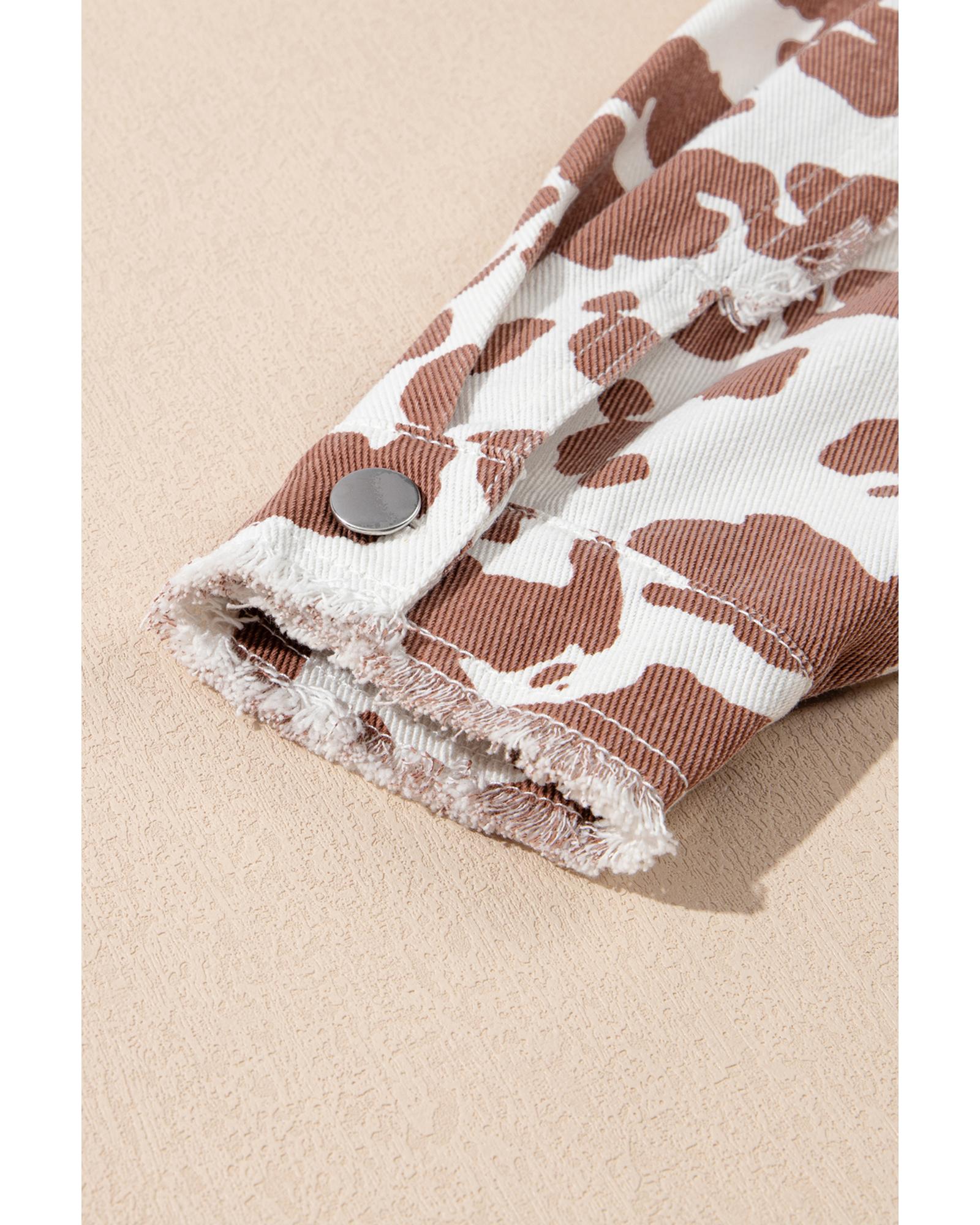 White Cow Spot Patchwork Flap Pocket Distressed Hem Long Denim Jacket – M