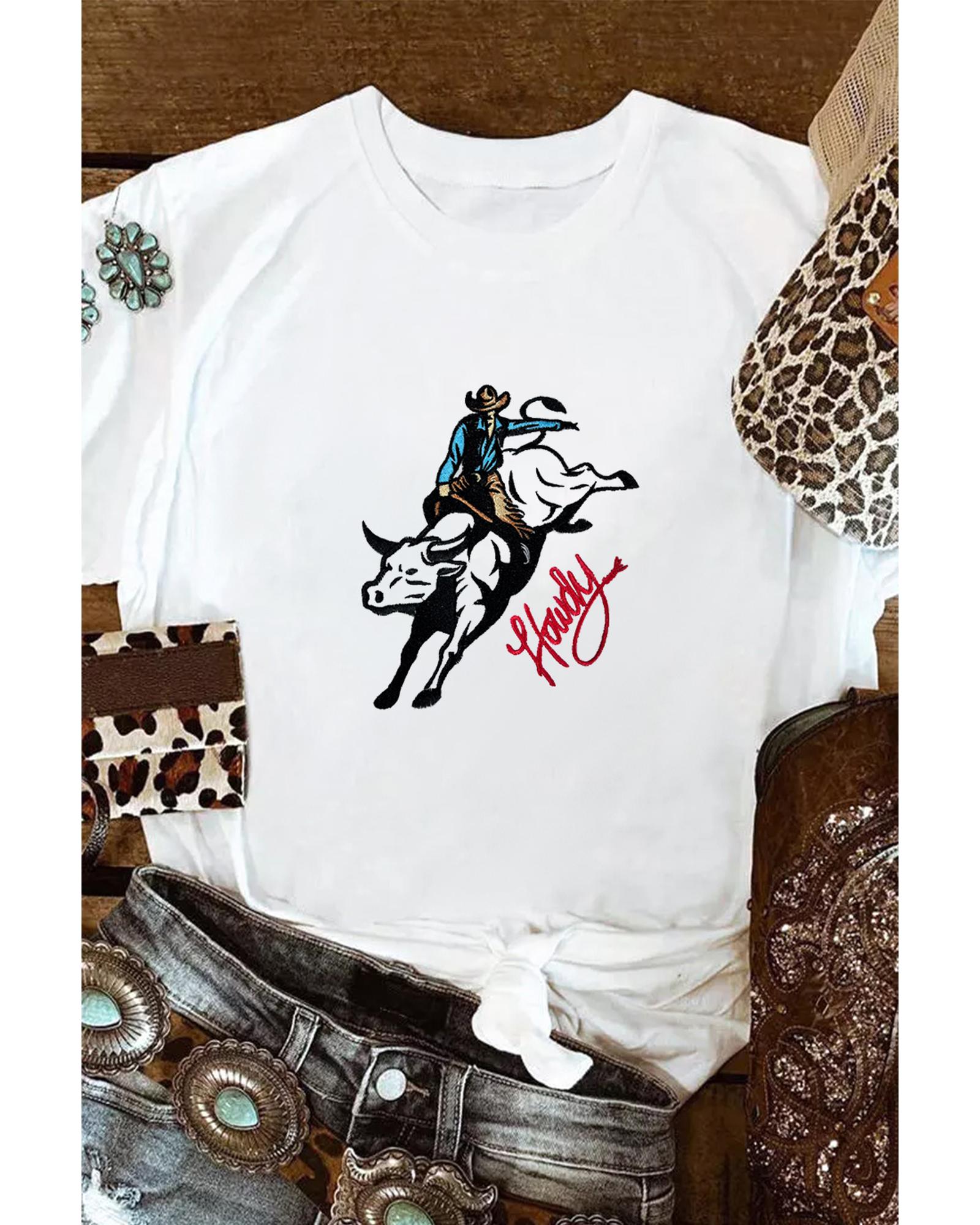 White Cowboy Howdy Embroidered Western Fashion T Shirt – 3XL