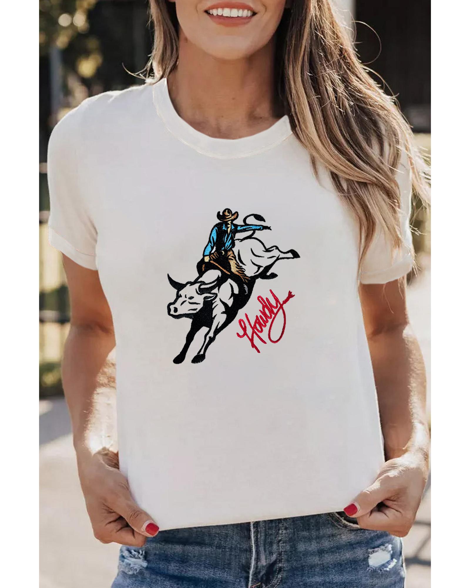 White Cowboy Howdy Embroidered Western Fashion T Shirt – XL
