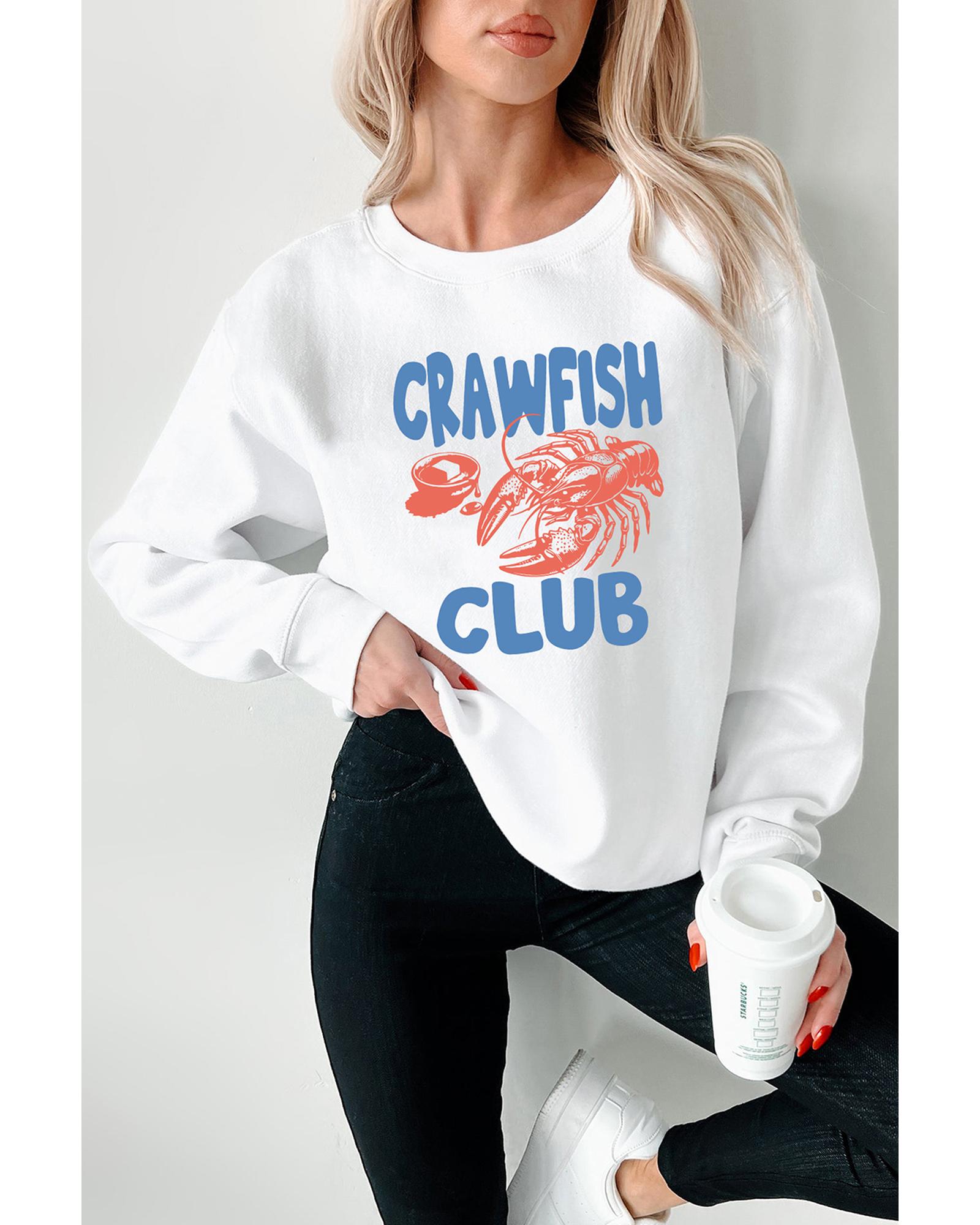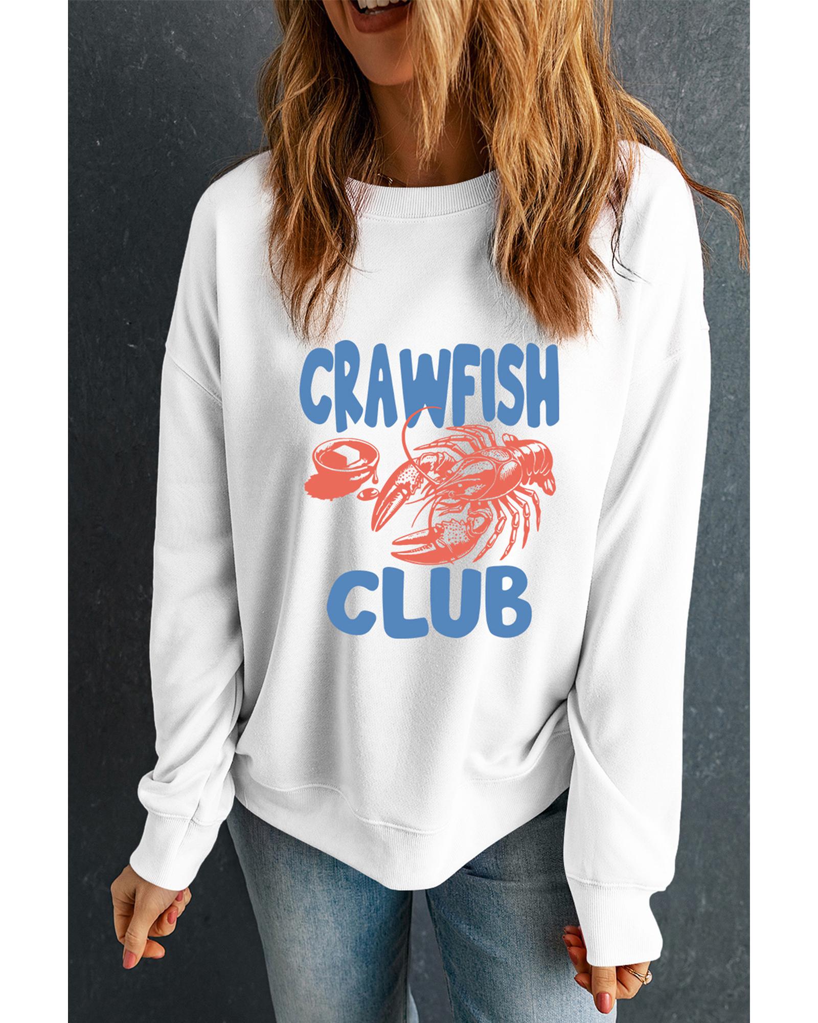 White CRAWFISH CLUB Printed Drop Shoulder Sweatshirt – M