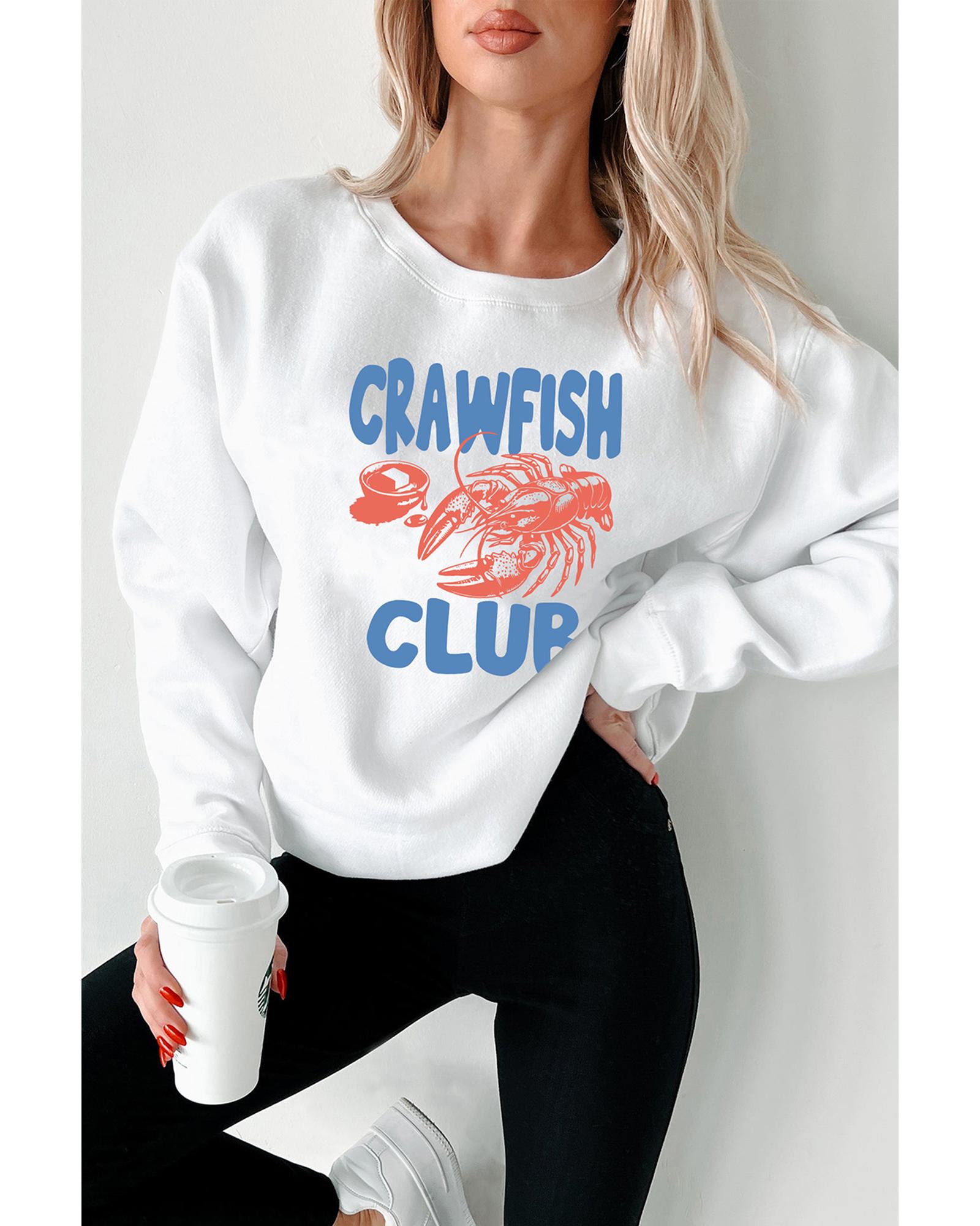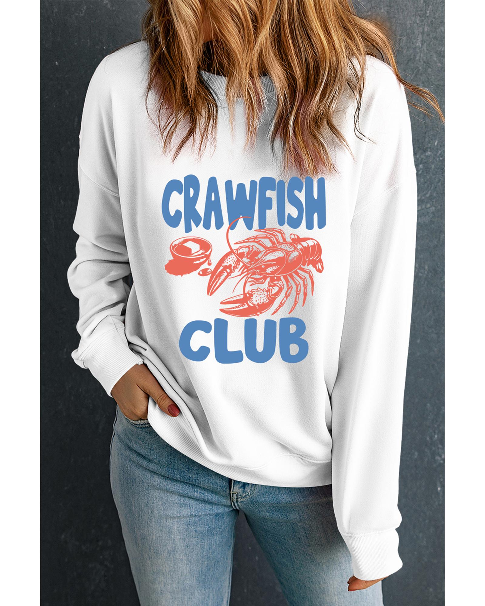 White CRAWFISH CLUB Printed Drop Shoulder Sweatshirt – XL