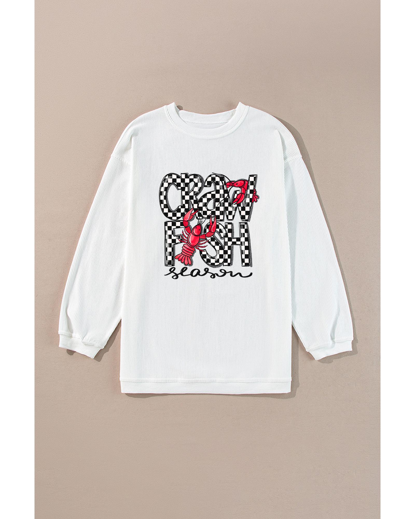 White Crawfish Season Checkered Letter Graphic Corded Sweatshirt - S