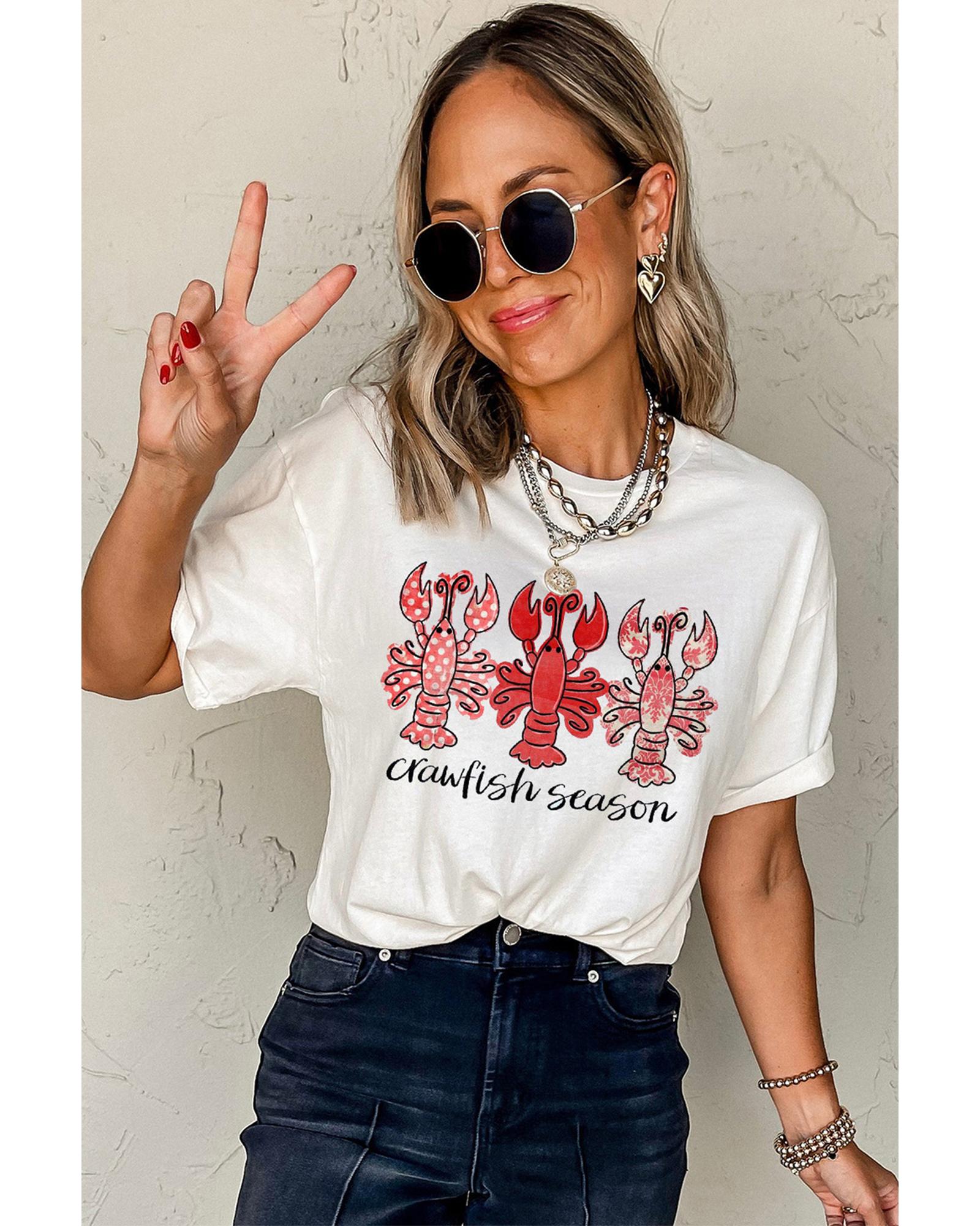 White Crawfish Season Fashion Graphic Crewneck T Shirt – M
