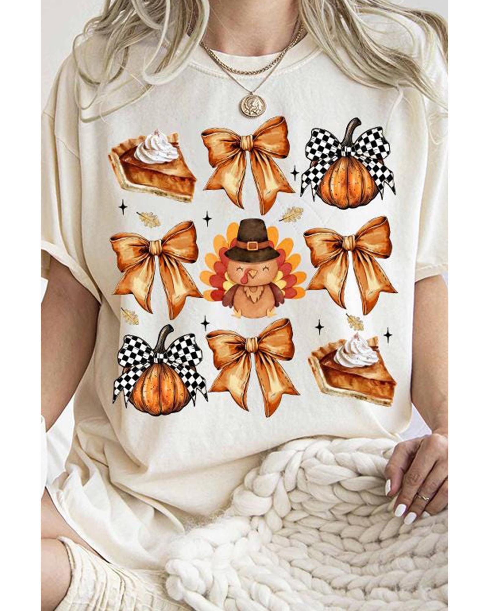 White Cute Bowknot Tanksgiving Graphic Crewneck T Shirt – XL