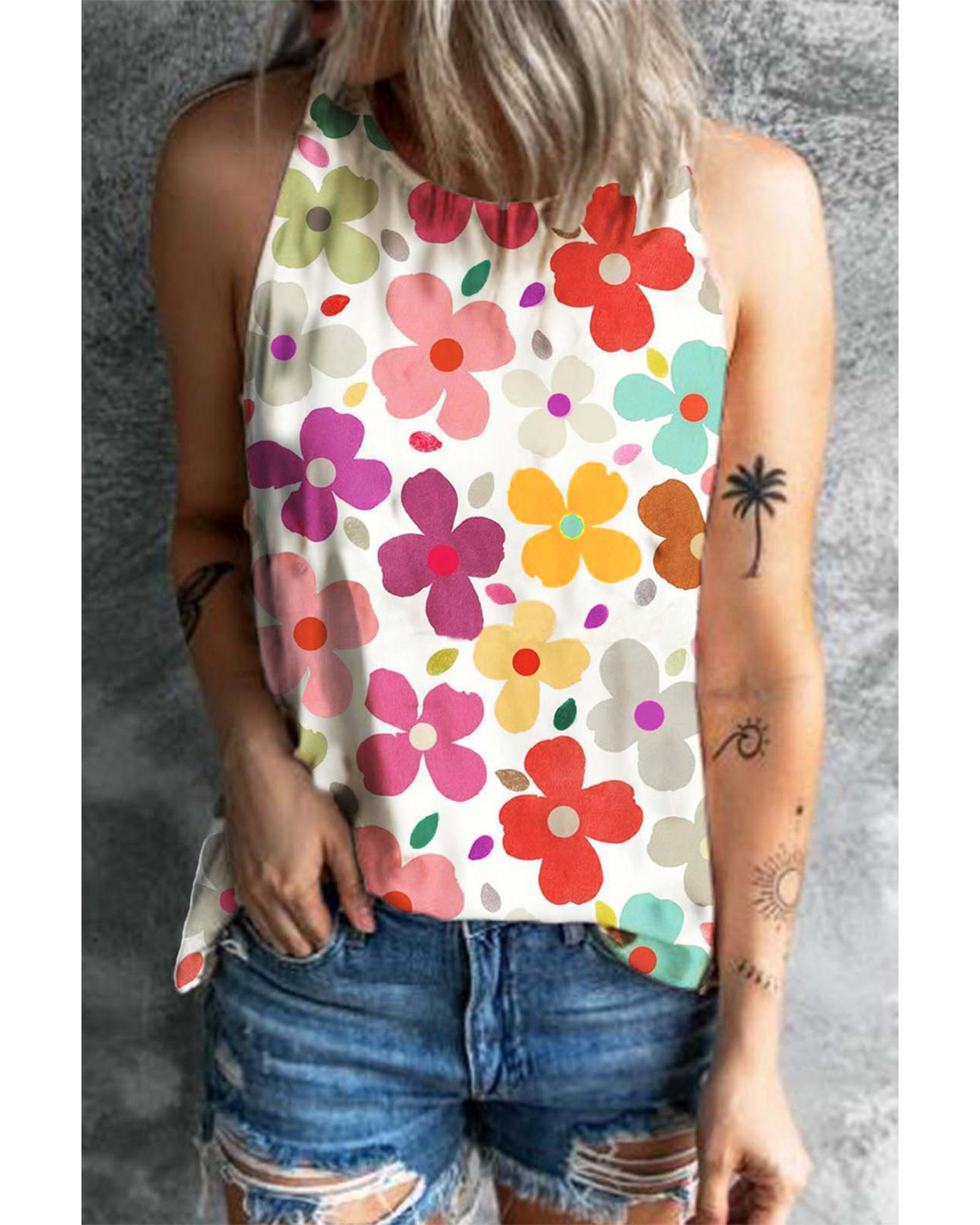 White Cute Floral Print Vest – M