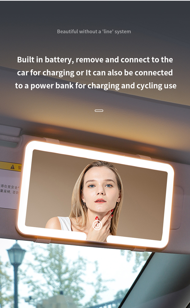White double button Car Sun Visor Makeup Mirror with LED Light – Tri-Color, Touch Control