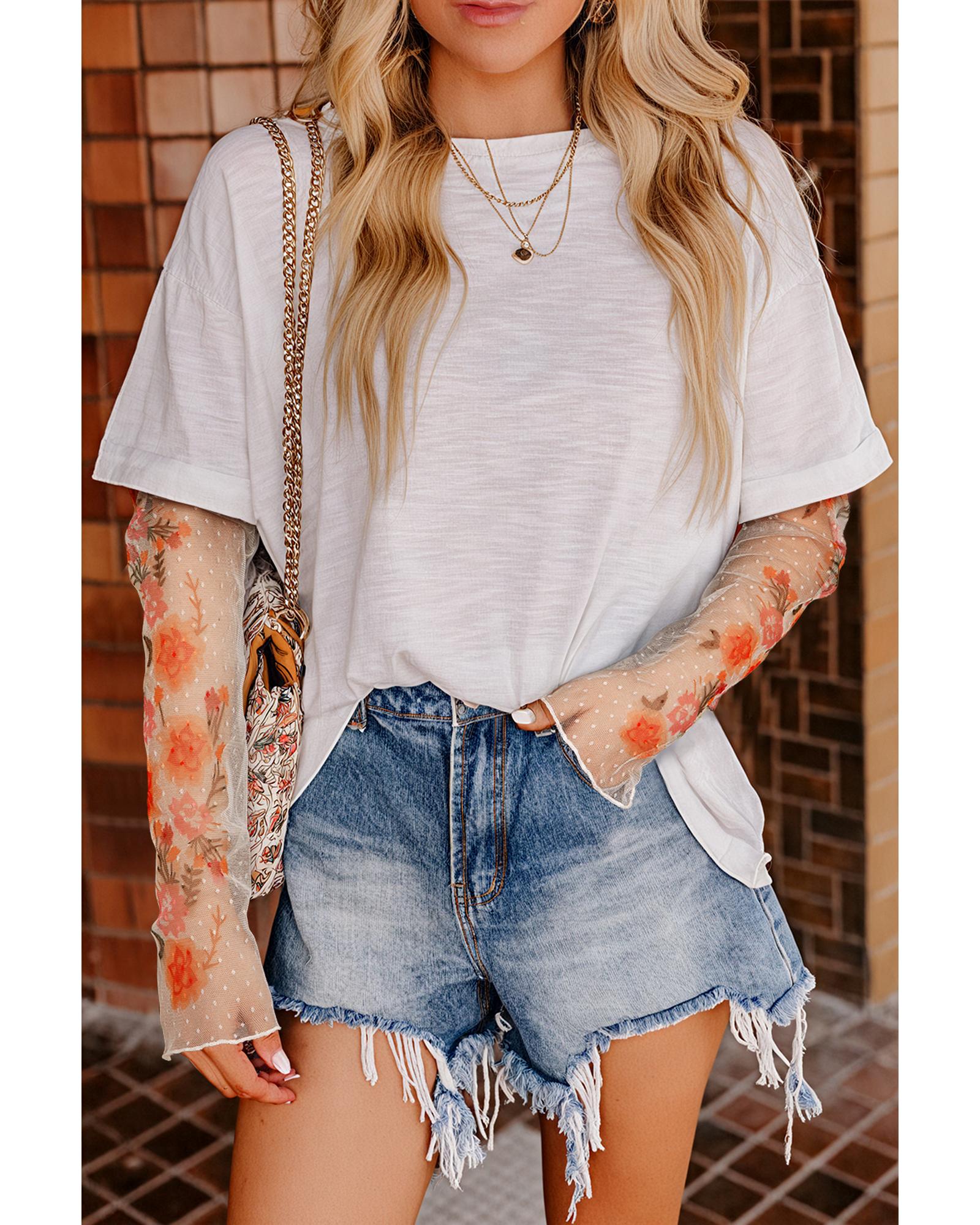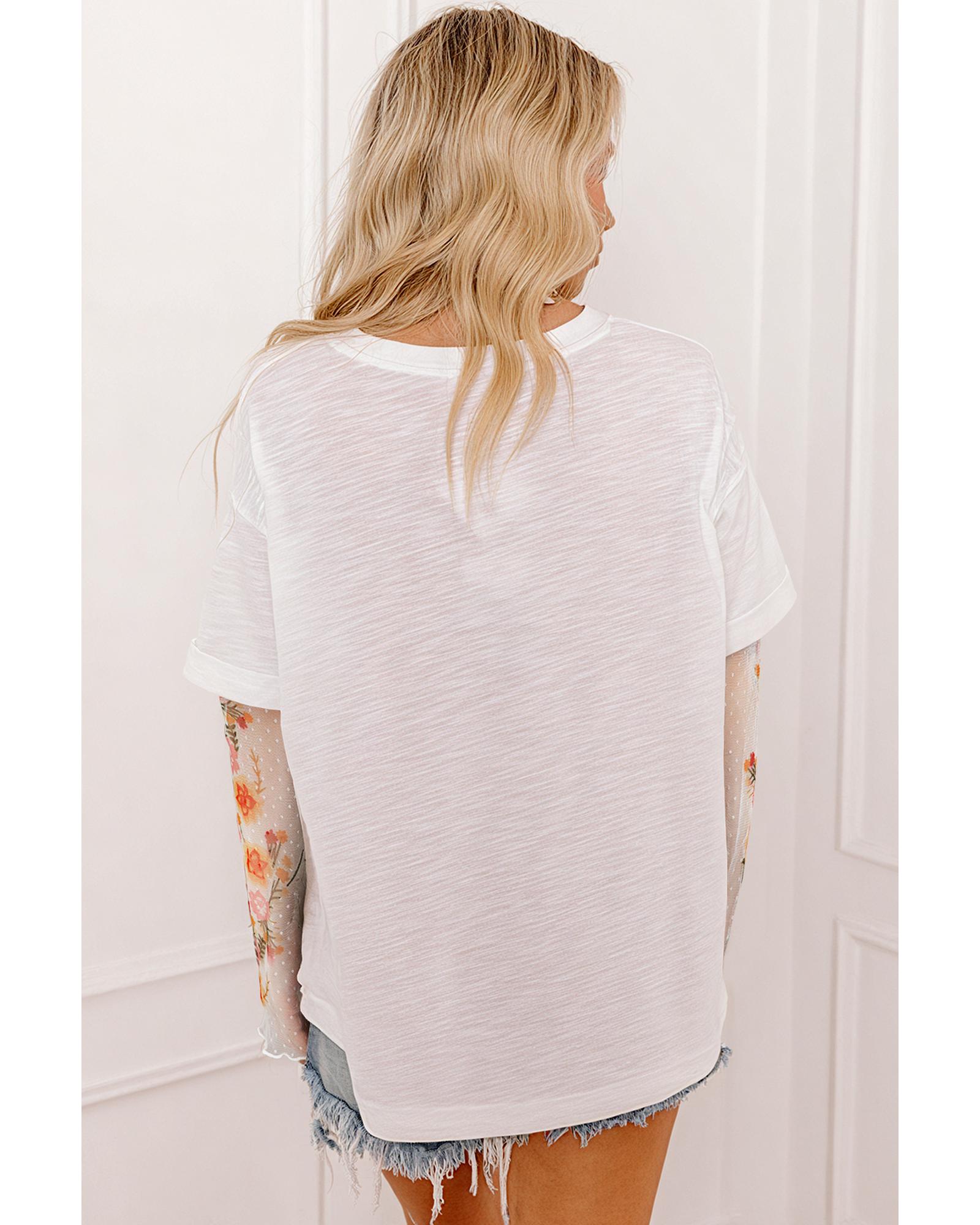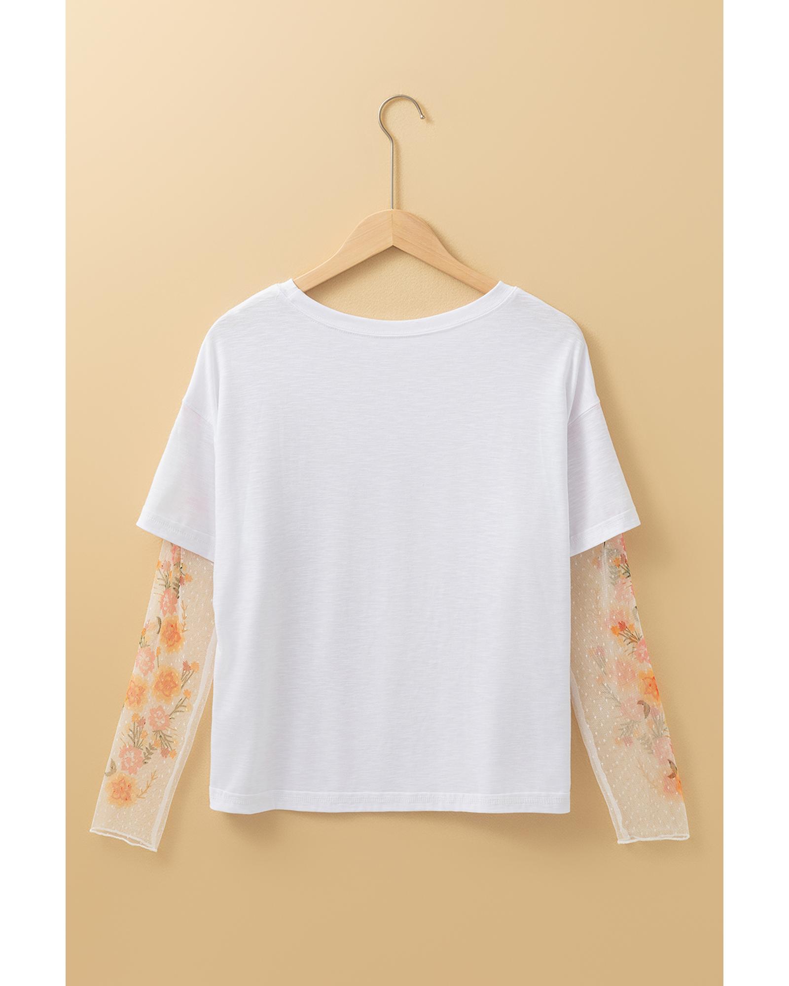 White Faux Two Piece Floral Long Sleeve Patchwork Tee – XL