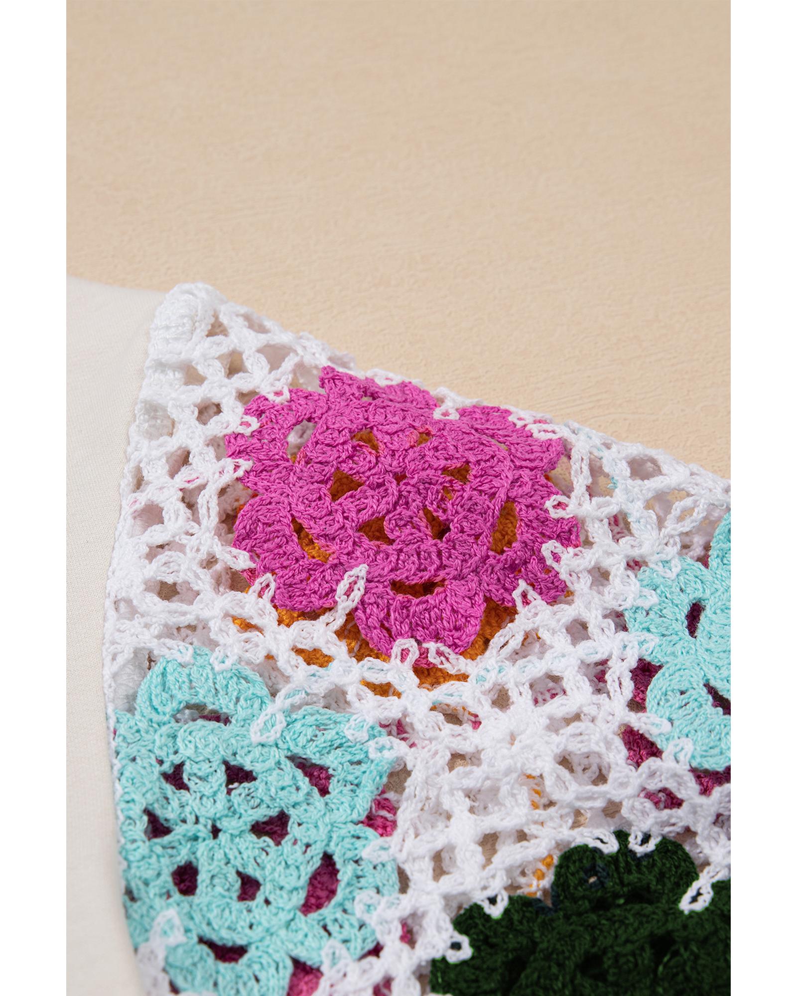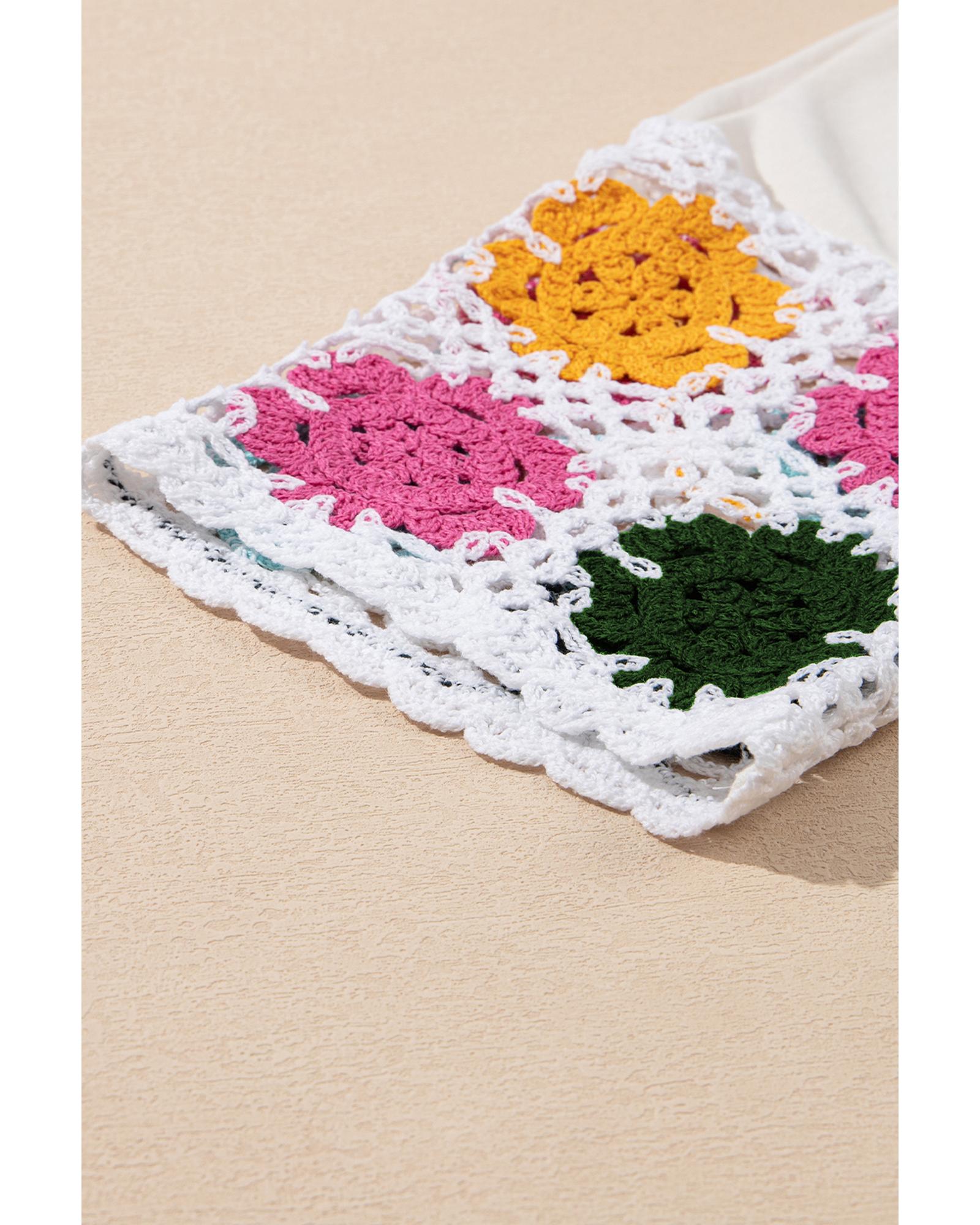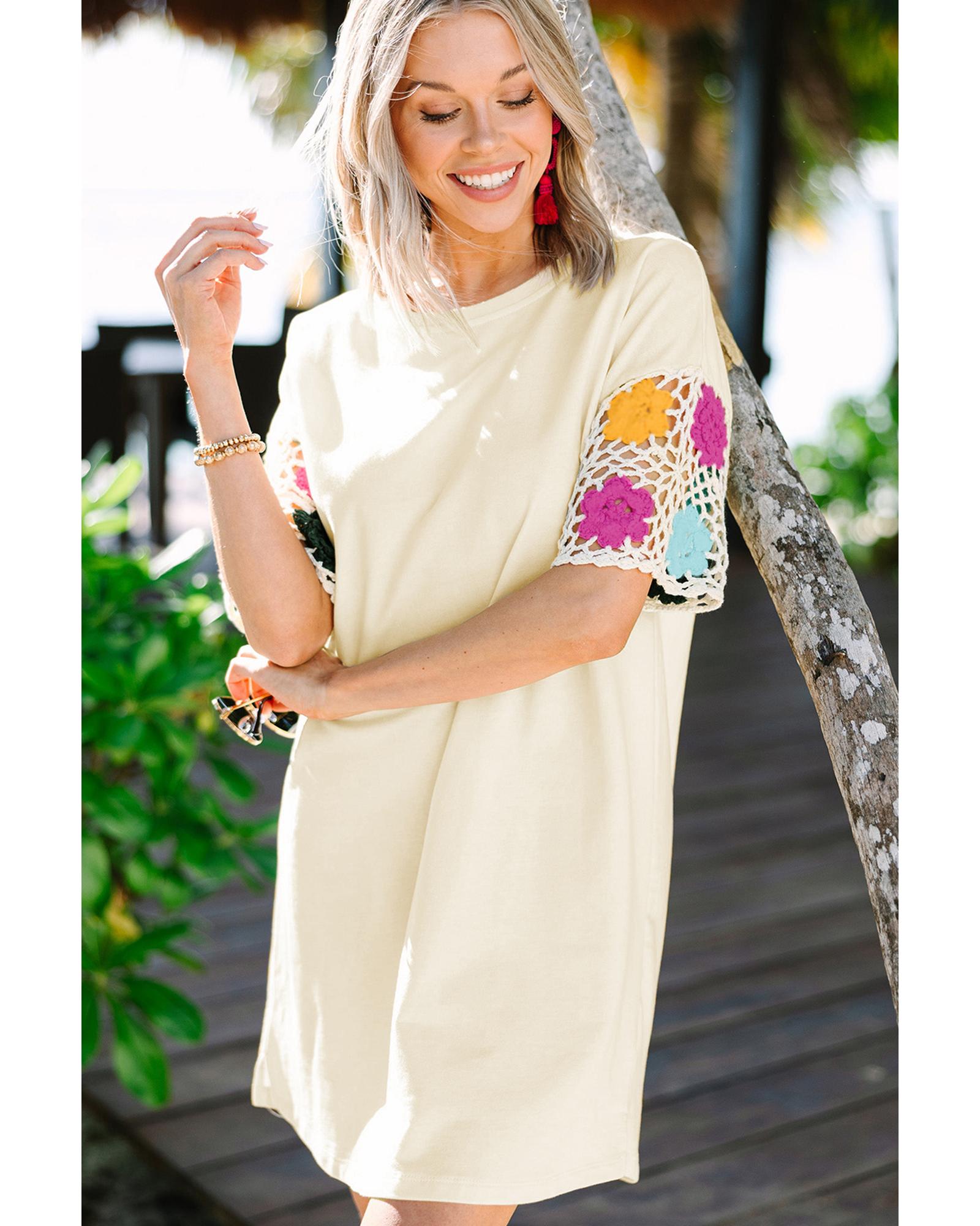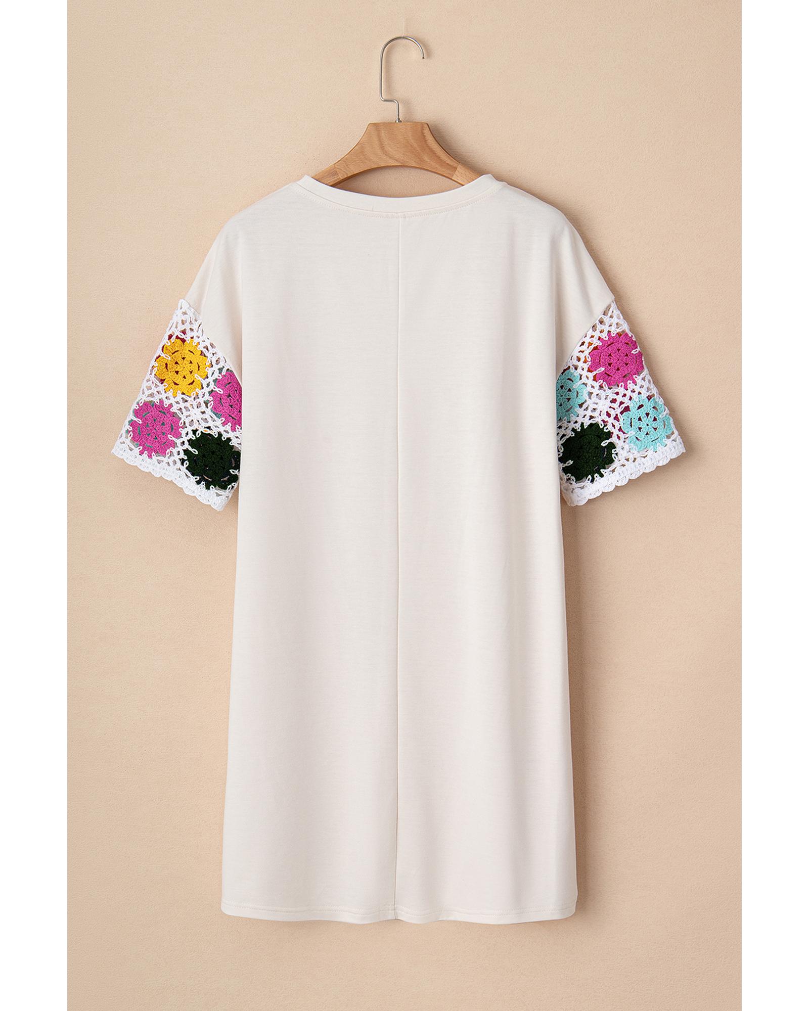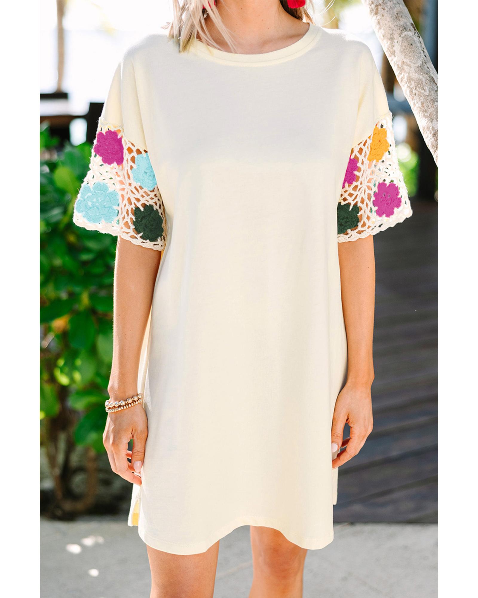 White Floral Crochet Splicing Sleeve T Shirt Dress – XL