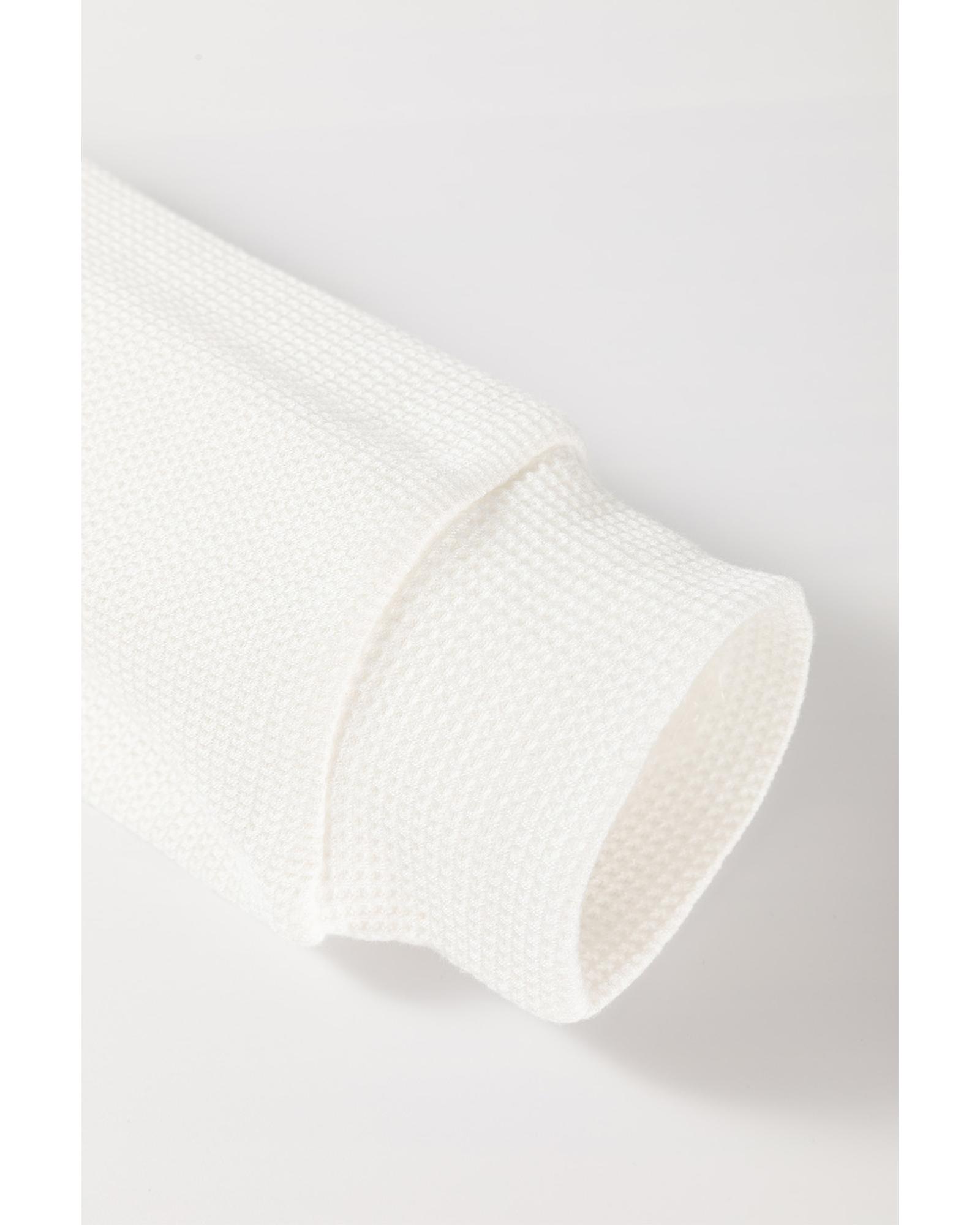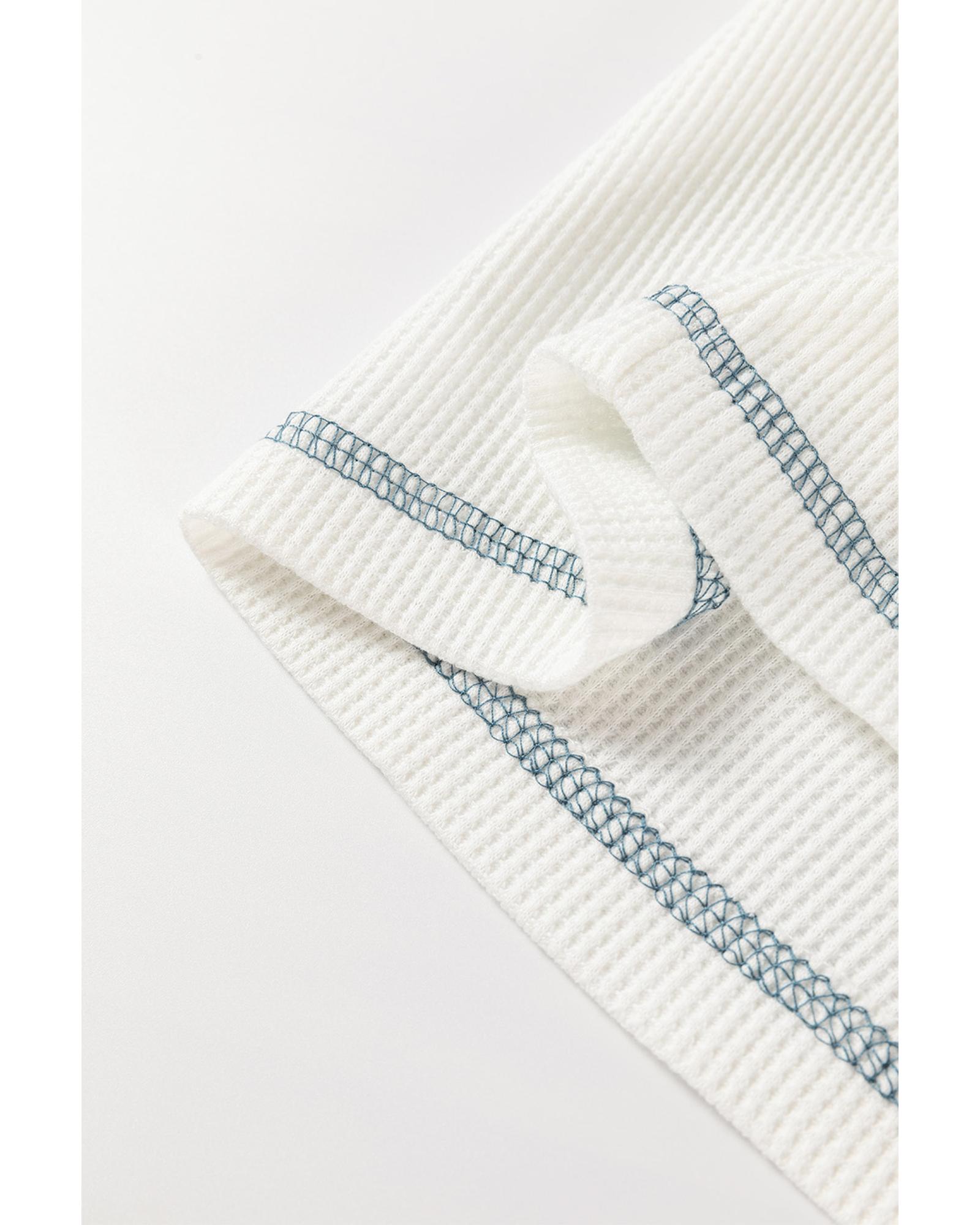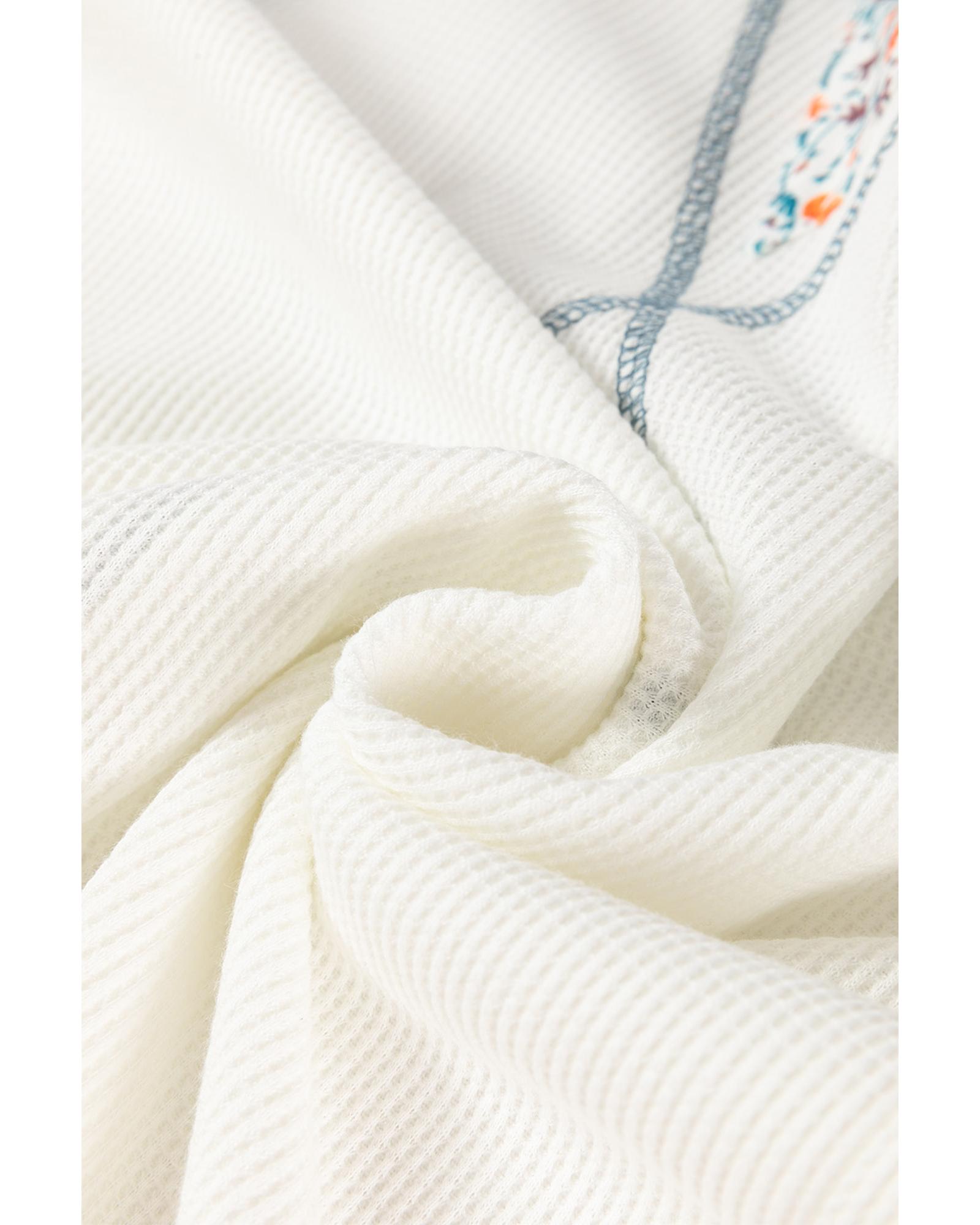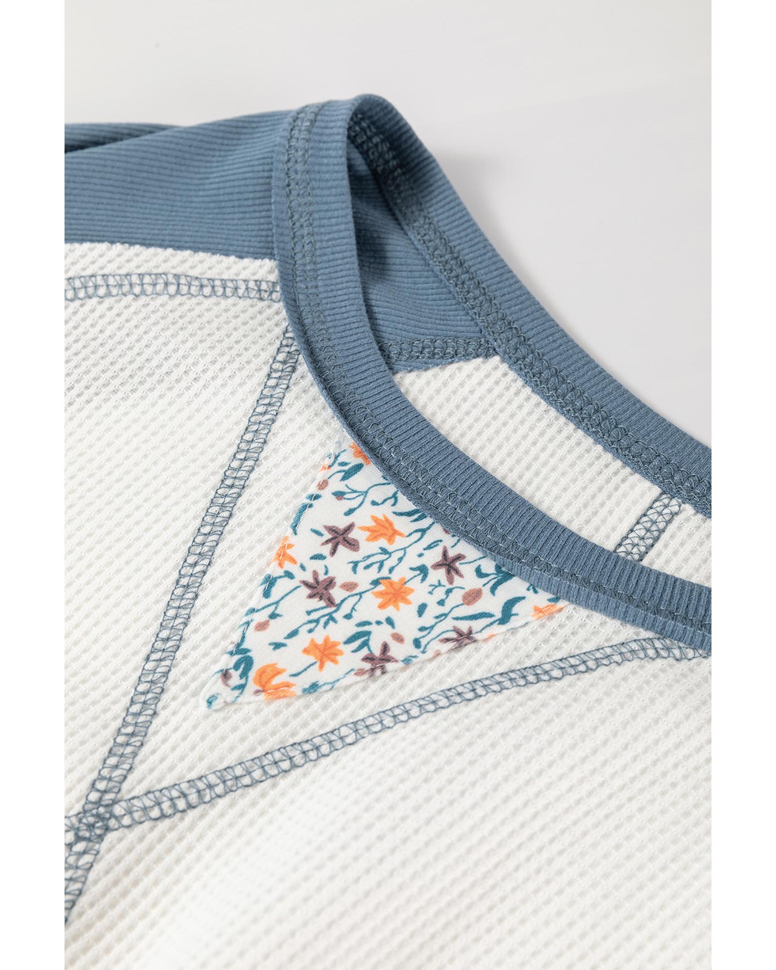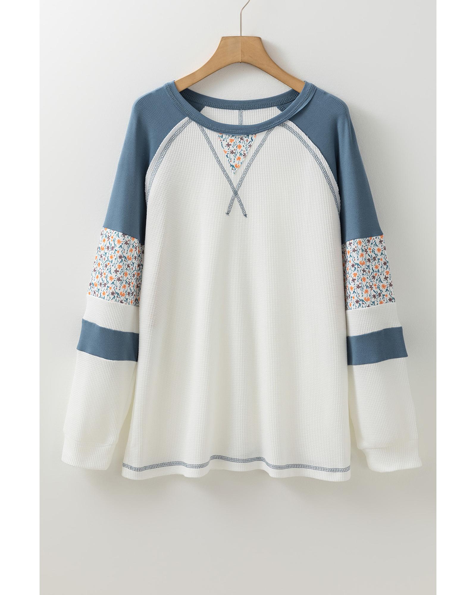 White Floral Patchwork Waffle Knit Raglan Top – M