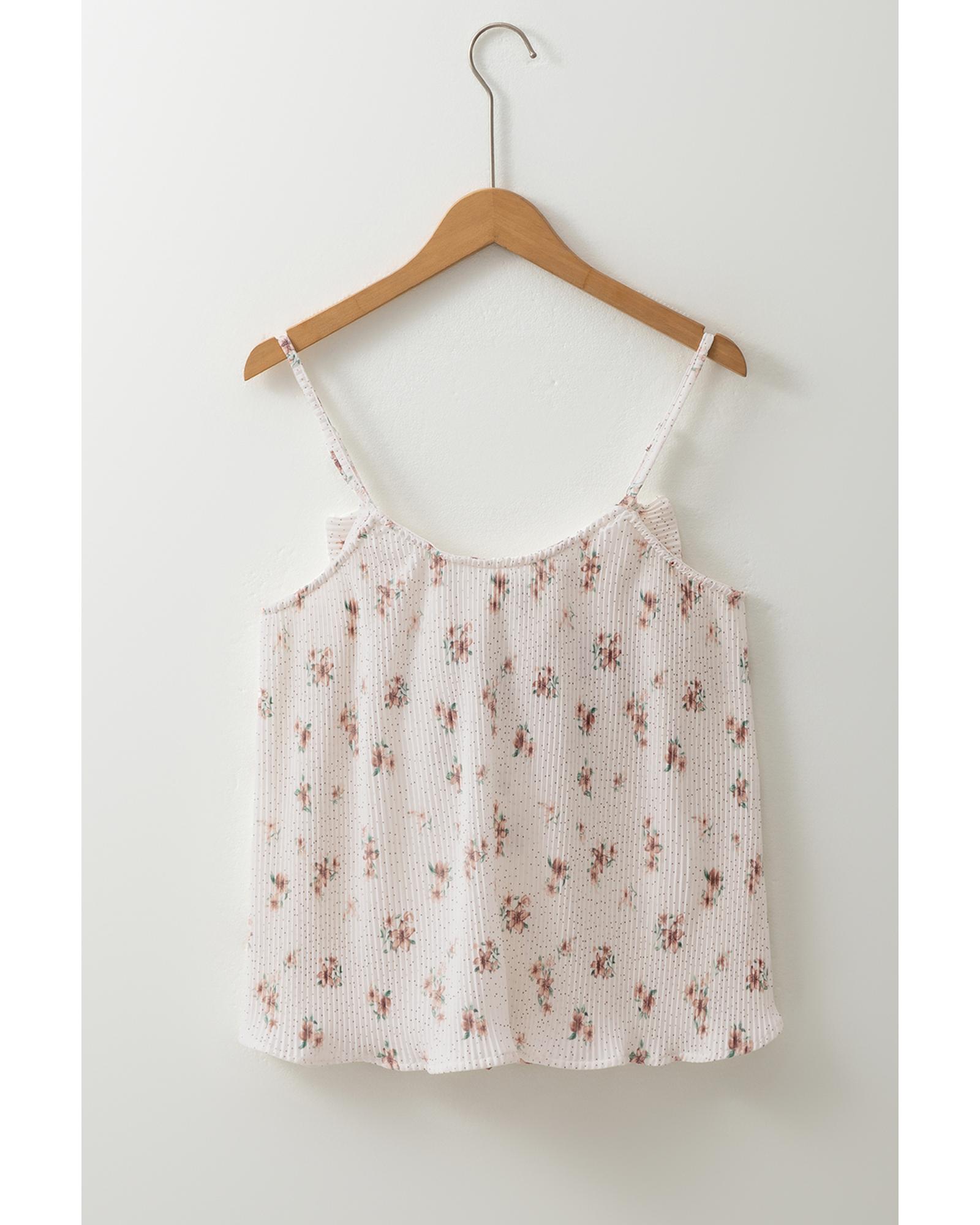 White Floral Pleated Big Bow Back Spaghetti Straps Tank Top – M