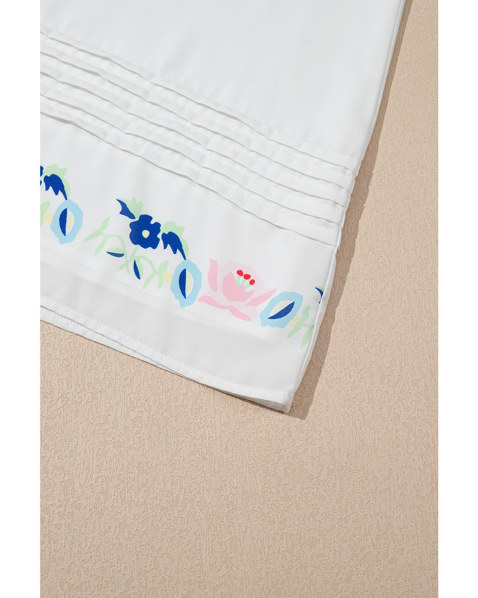 White Floral Print Boho Tassel Tie Split Neck Tucking Detail Puff Sleeve Mini Dress – XL