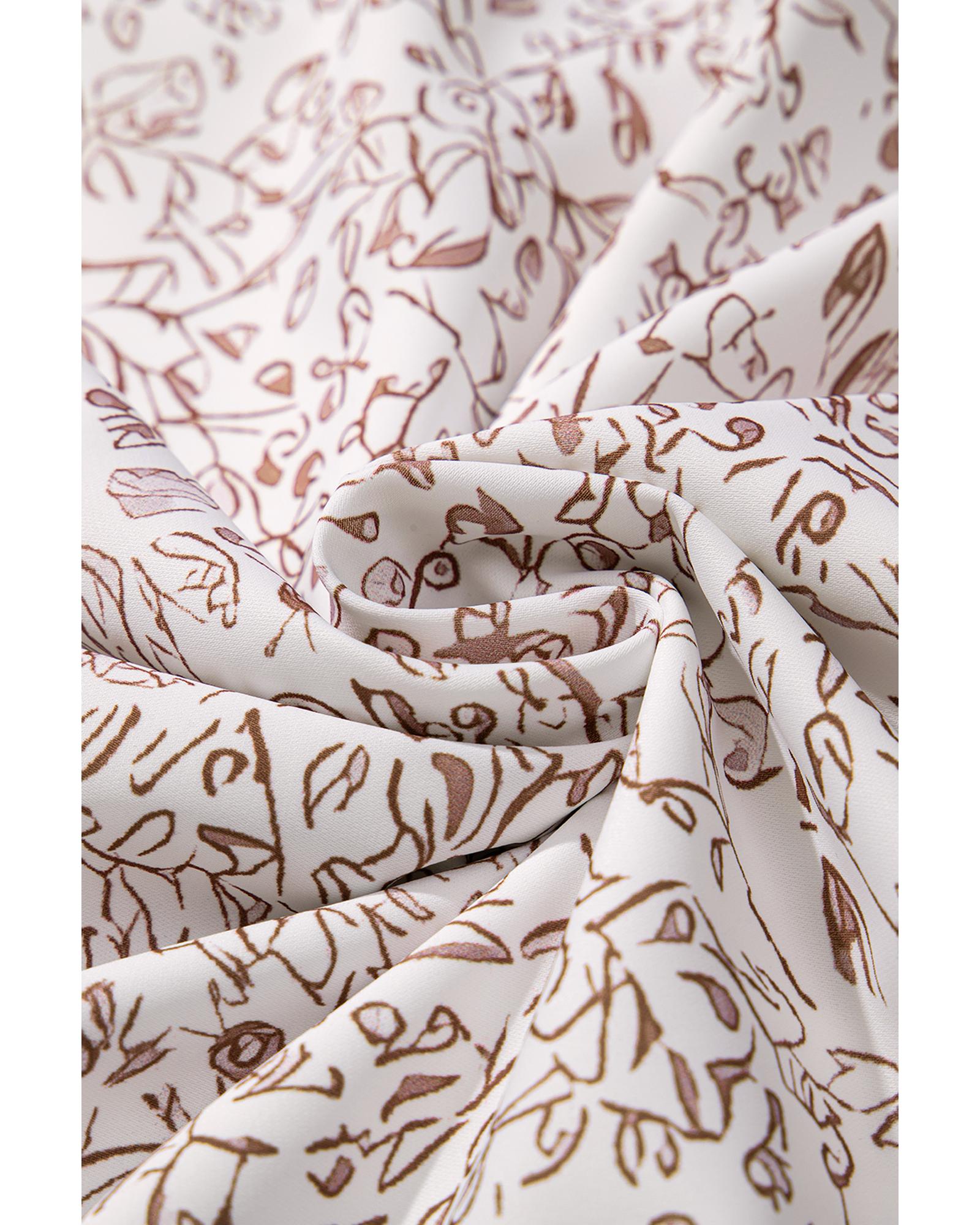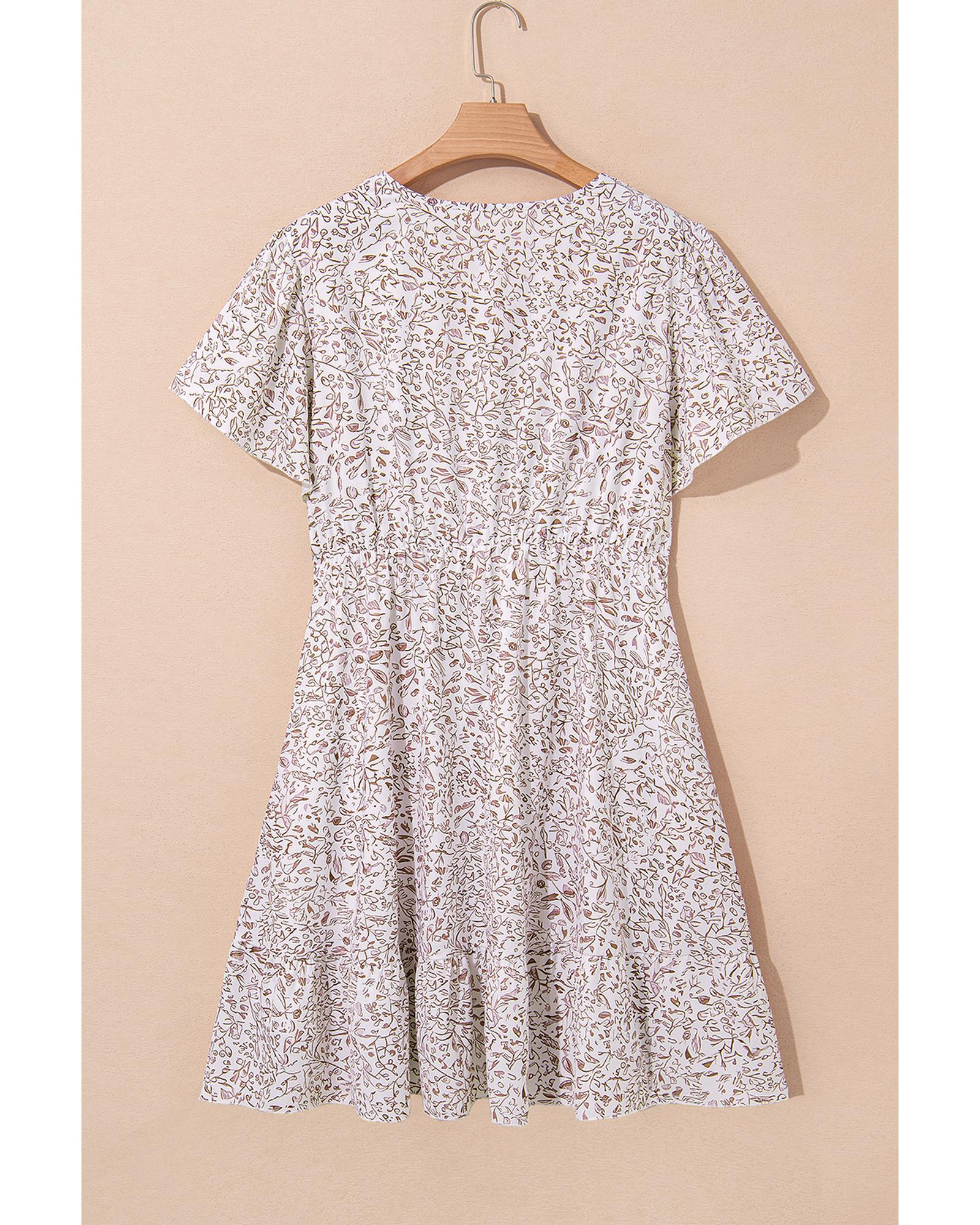 - White Floral V Neck Ruffled Short Sleeve Plus Size Dress