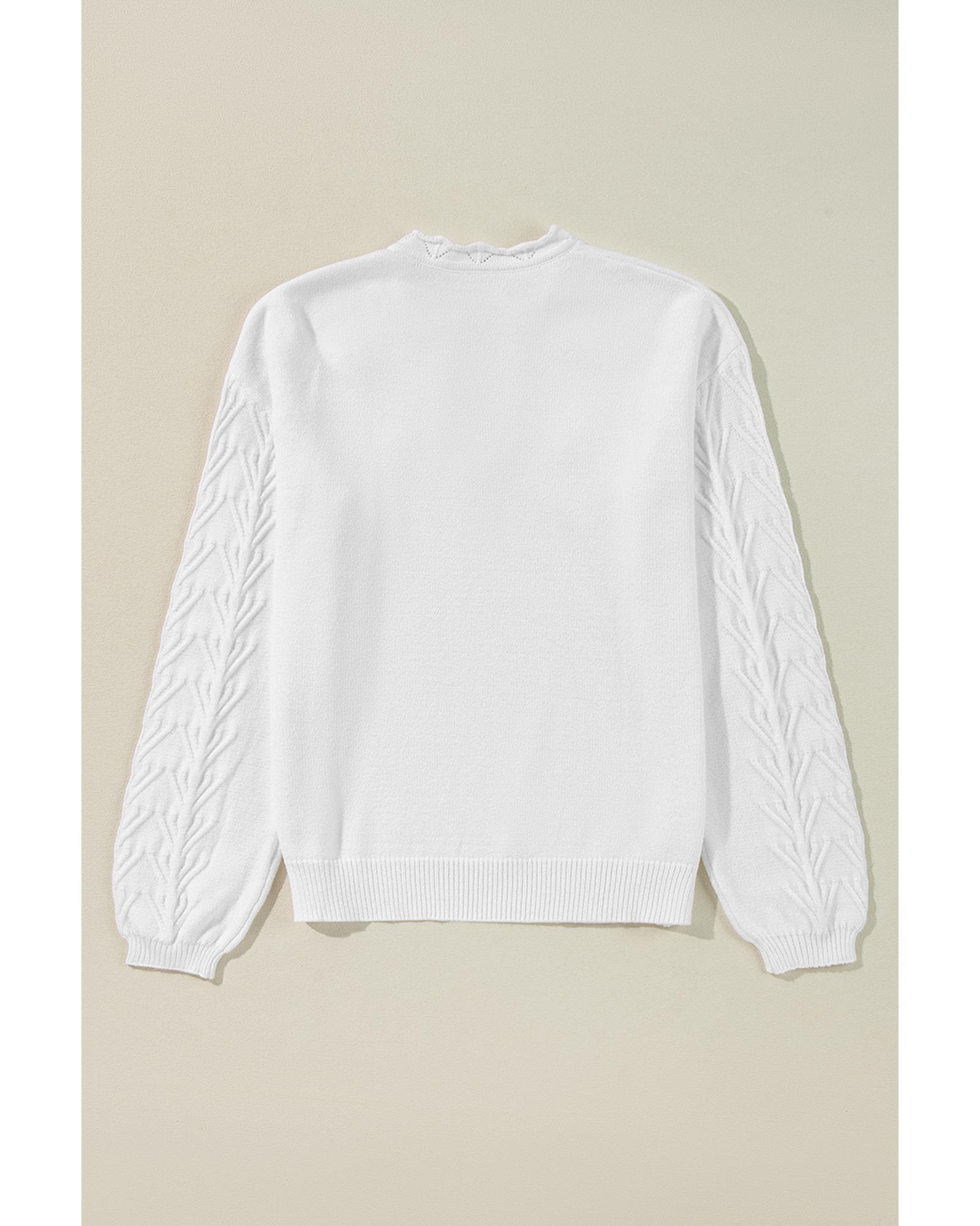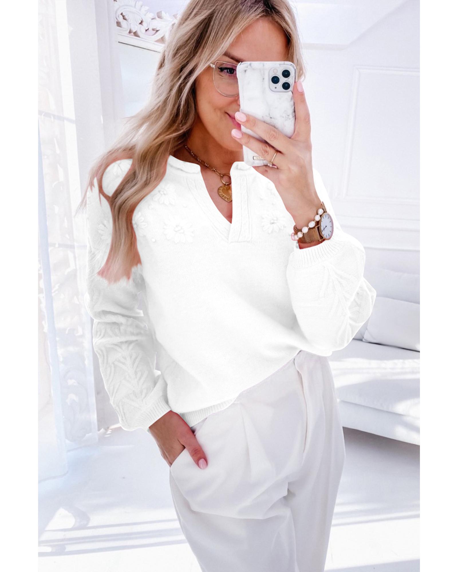 Parchment Contrast Flower Half Zipper Stand Neck Sweater - M