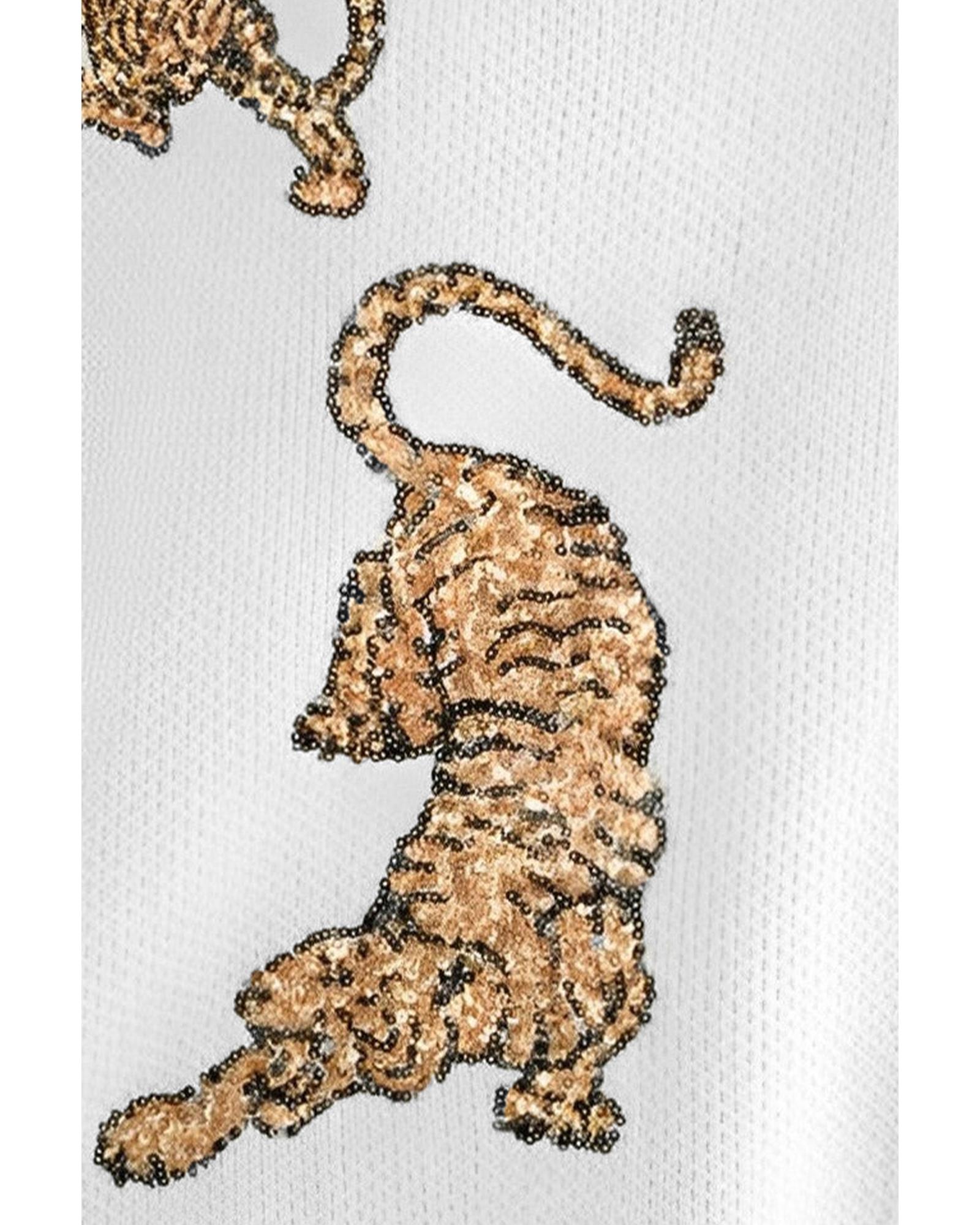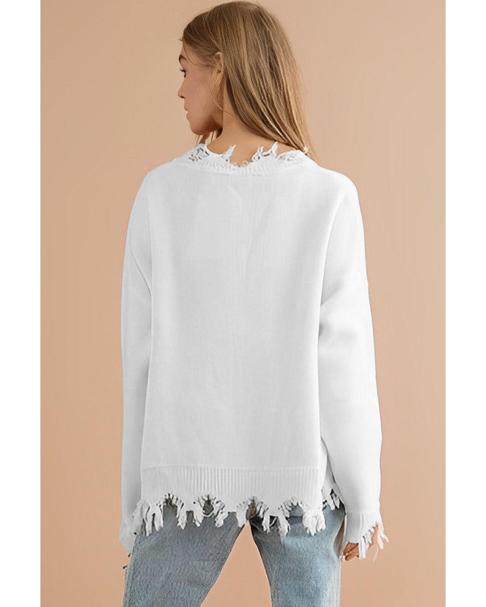 Beau Blue Flower Detail Knitted Notched Neck Sweater - XL