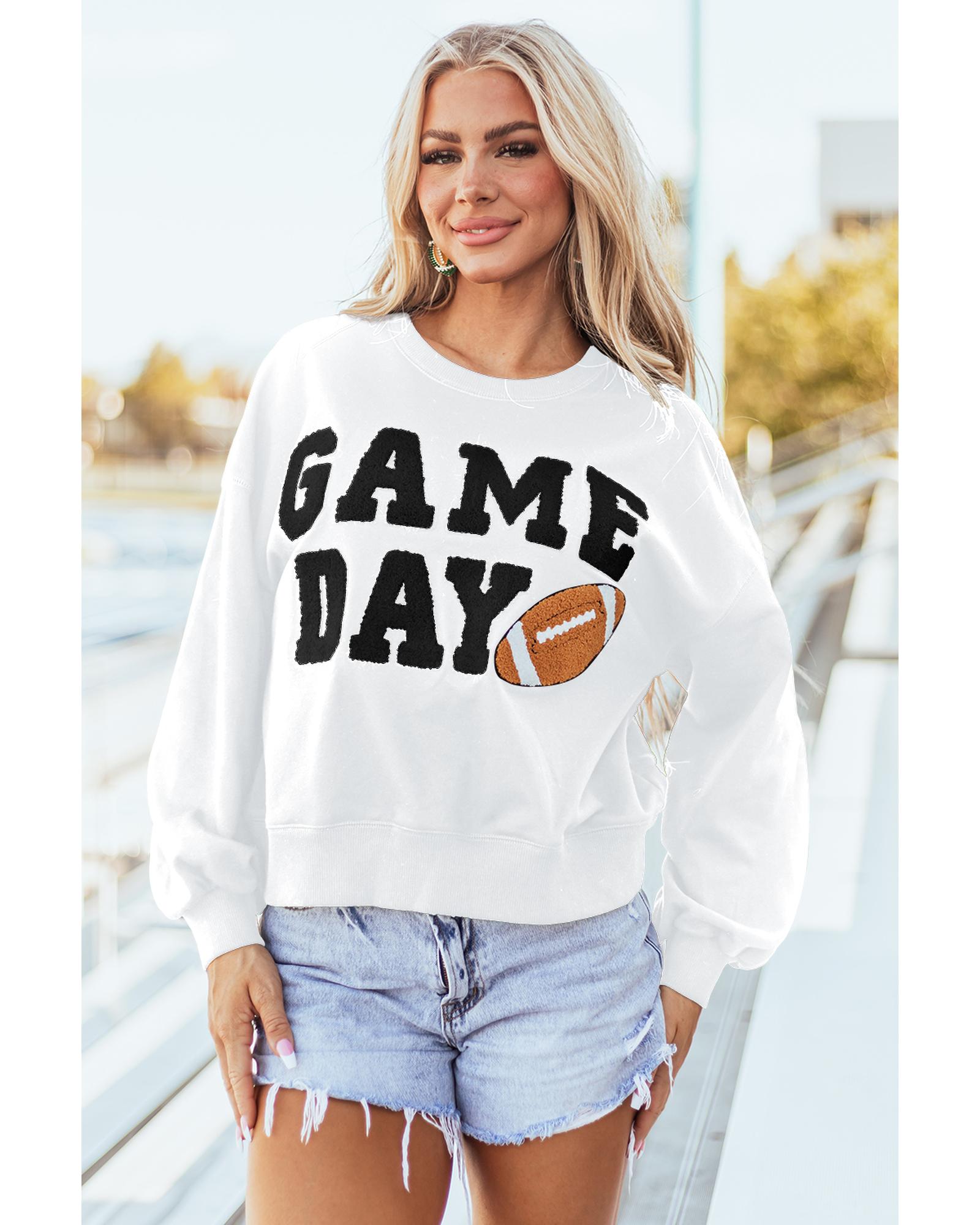 White GAME DAY Graphic Varsity Pullover Sweatshirt – 2XL