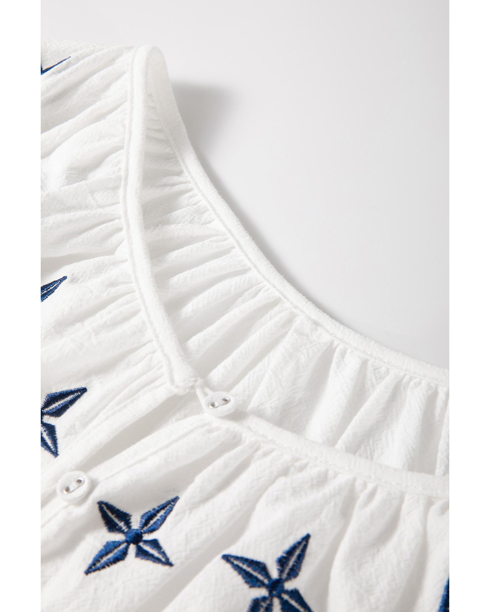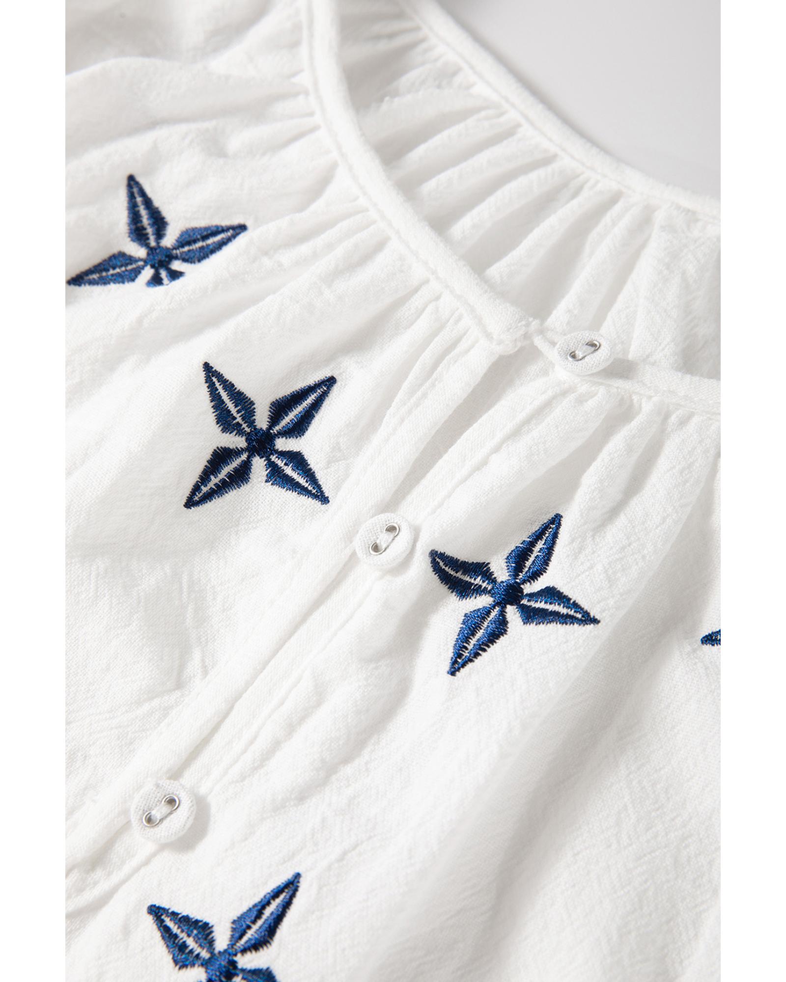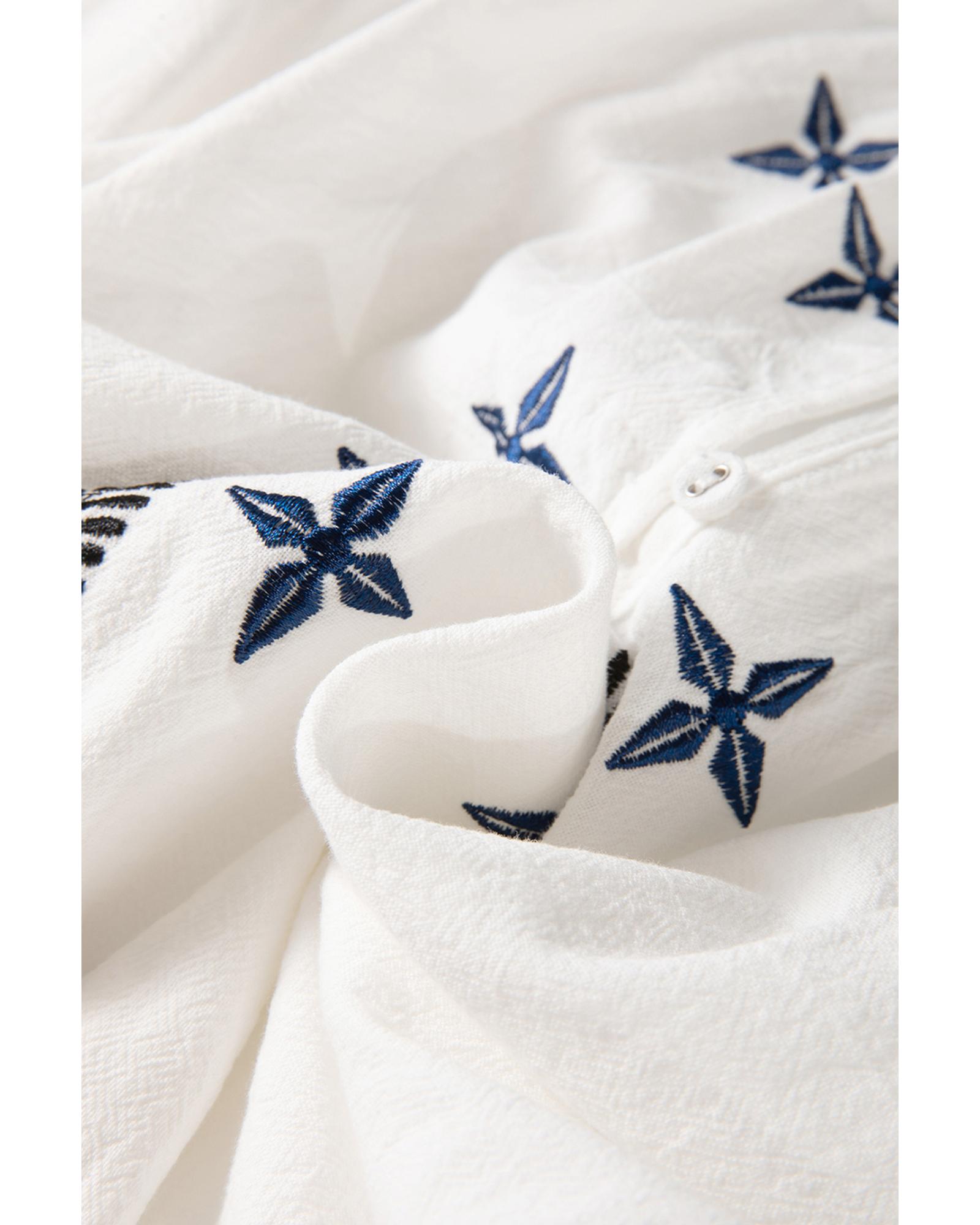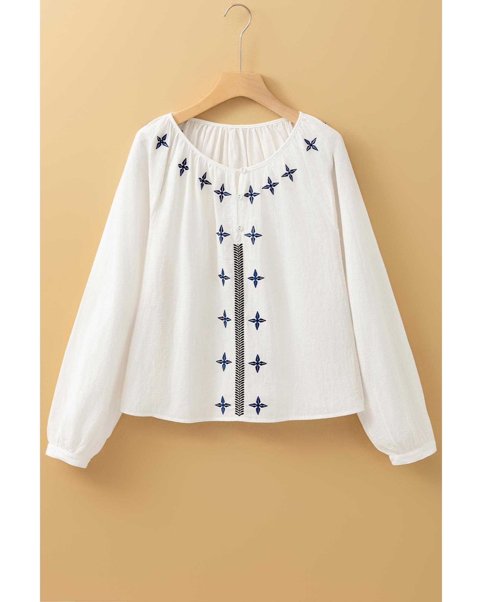 White Geometric Embroidered Long Sleeve Buttoned Blouse – XL