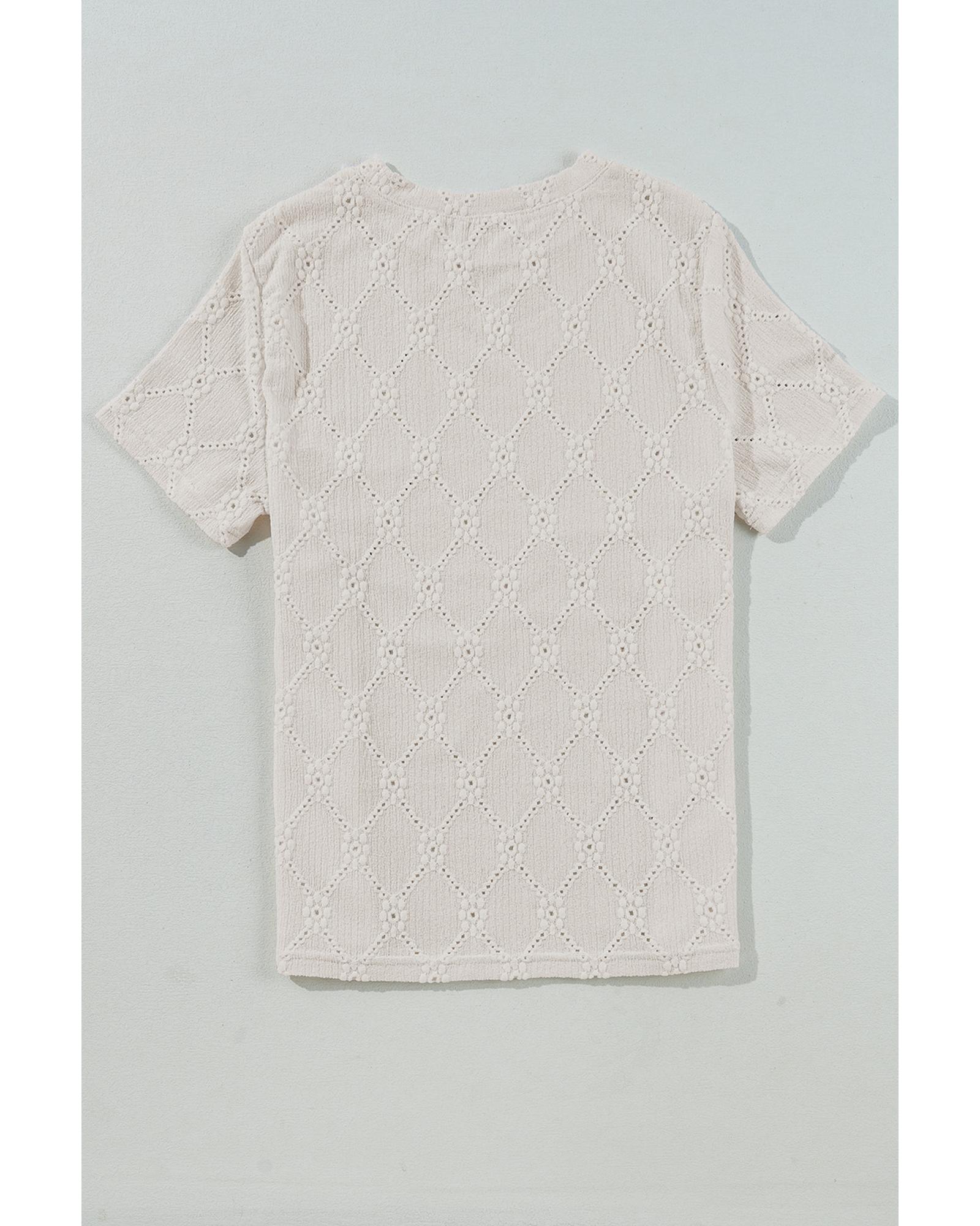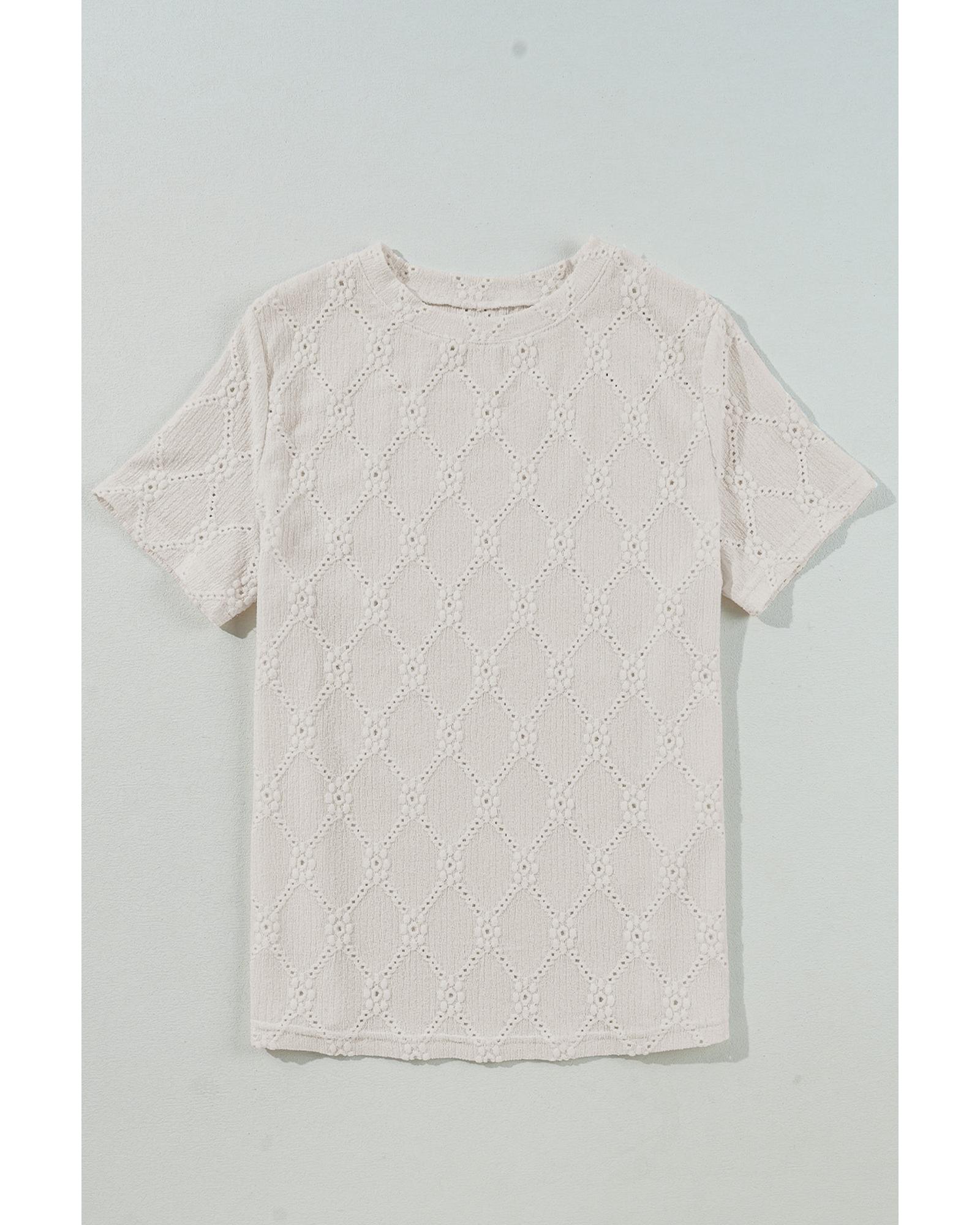 White Geometric Embroidered Slim Fit O Neck T Shirt – S
