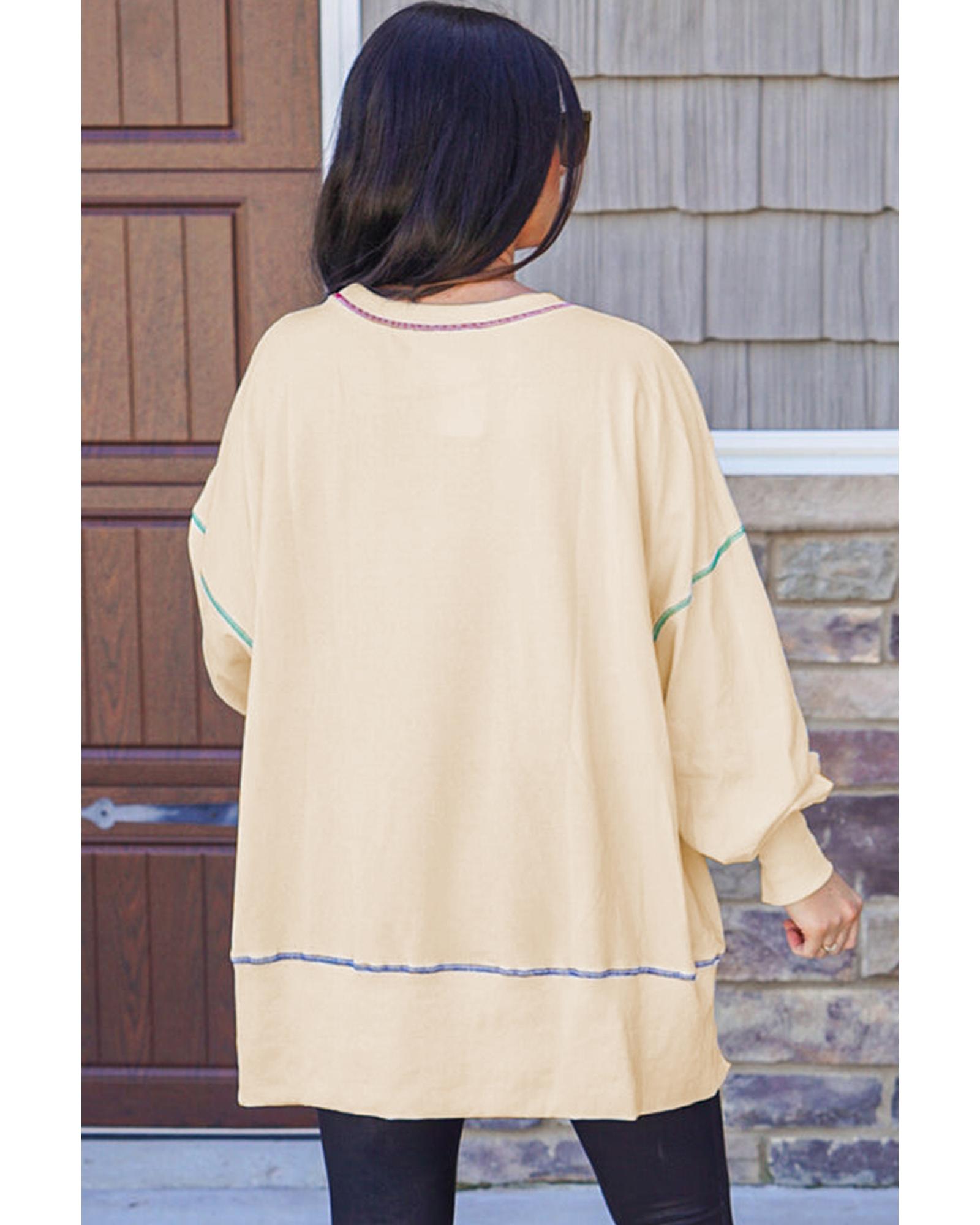 White Give Thanks to the LORD Graphic High Low Hem Loose Sweatshirt – M