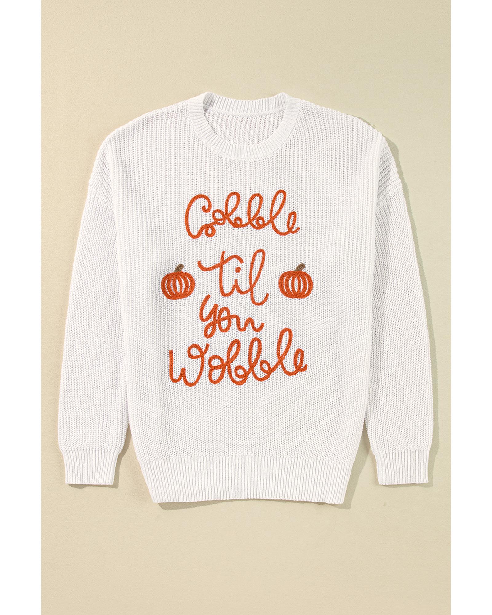White Gobble Til You Wobble Pop Up Crochet Plus Size Sweater – 2X