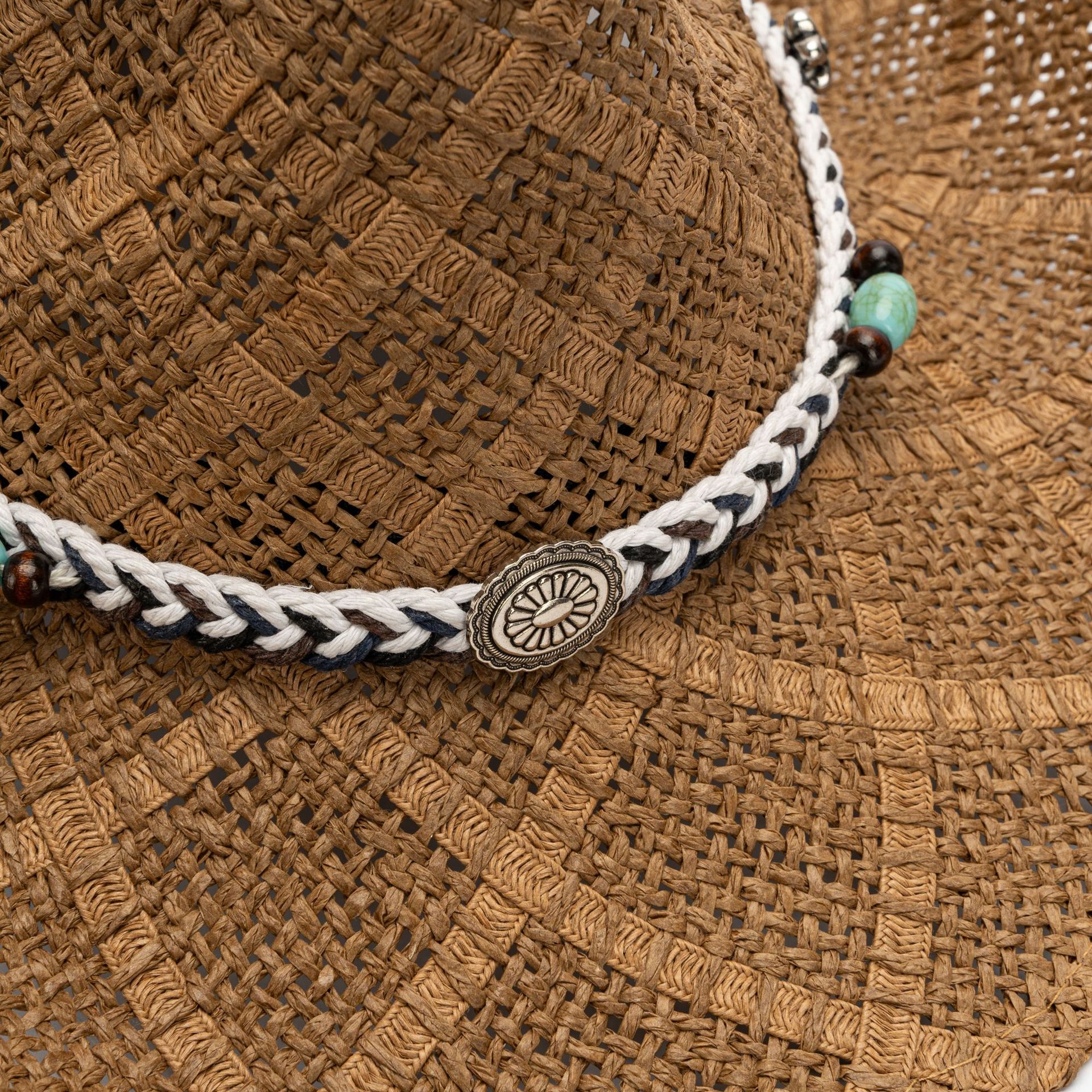 White Handmade Straw Cowboy Hat, Summer Sun Hat, Outdoor Sun Protection, Fits Head Size 58-59cm